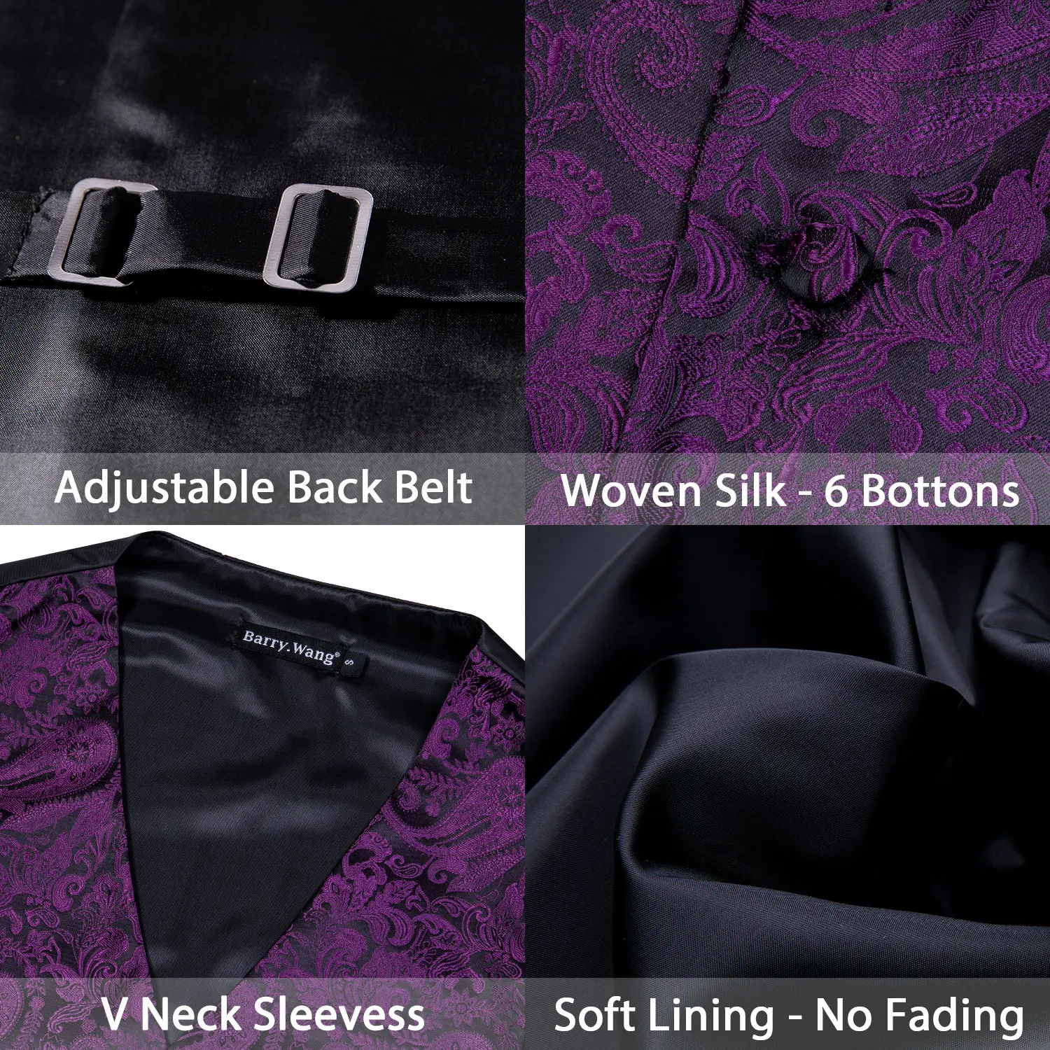 Мужской приталенный жилет Barry.Wang, черный жилет с принтом пейсли, под платок и запонки, фиолетовый деловой жилет
