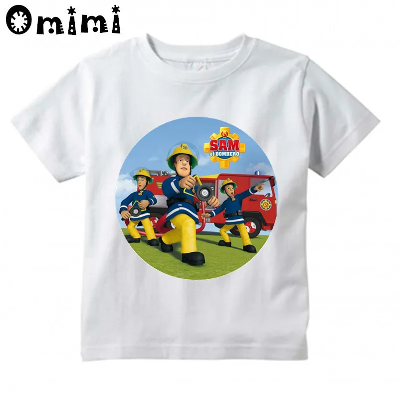 Детская футболка Sam с изображением пожарного и пожарного, отличные милые топы с коротким рукавом для мальчиков и девочек, Забавная детская футболка, ooo3062