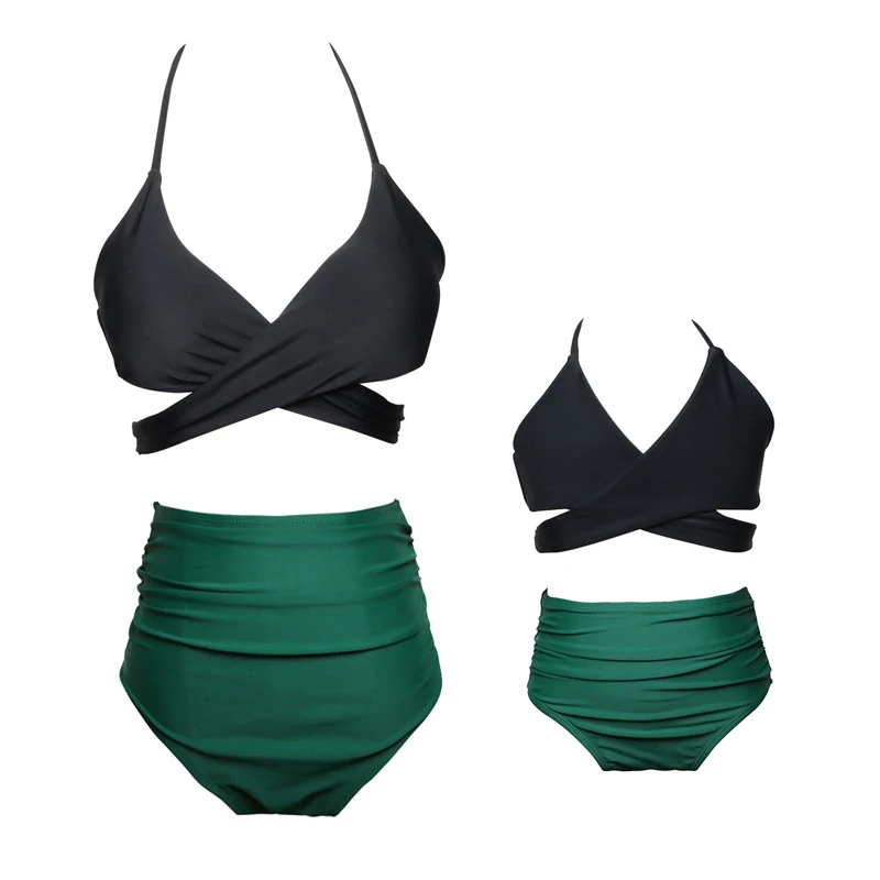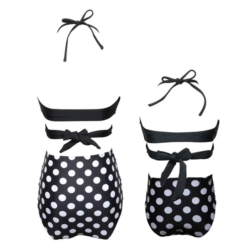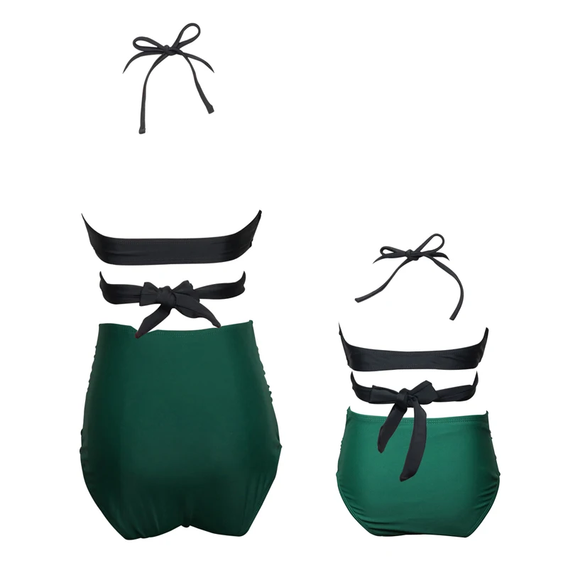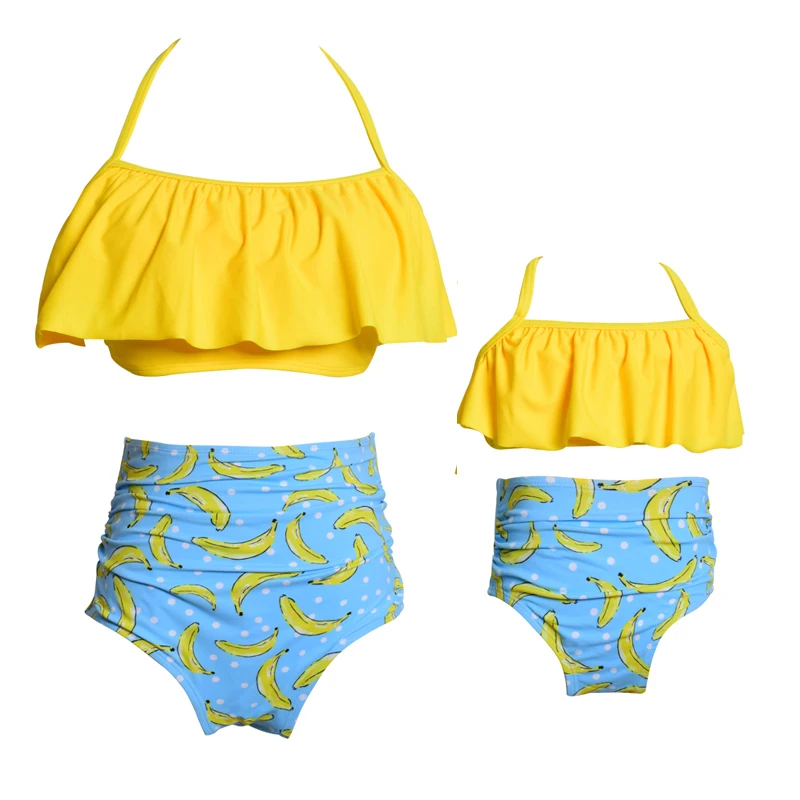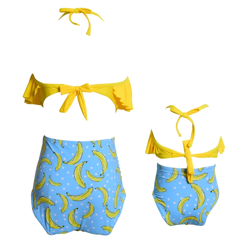 Купальник из двух частей с воланом на шее для родителей и детей купальник с высокой талией для матери и дочери семейное подходящее платье купальный костюм для девочек