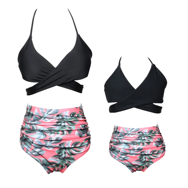 Купальник для родителей и детей, бикини с высокой талией и принтом,...