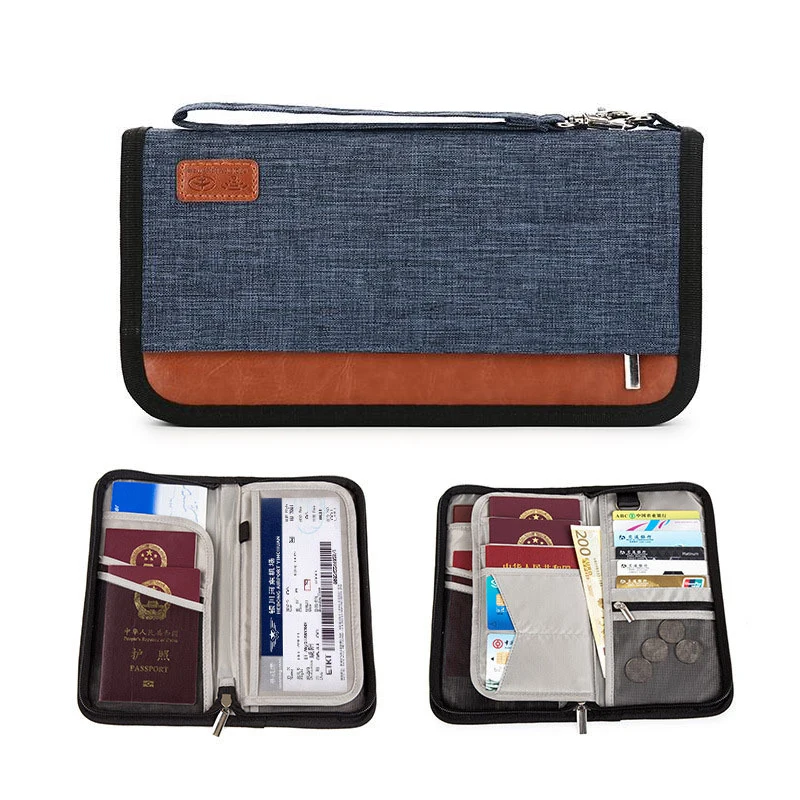 Портативный RFID Блокировка Дорожная сумка Кошелек Органайзер на молнии паспорта билетов ID держатель