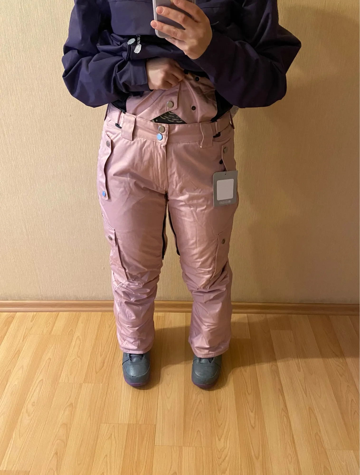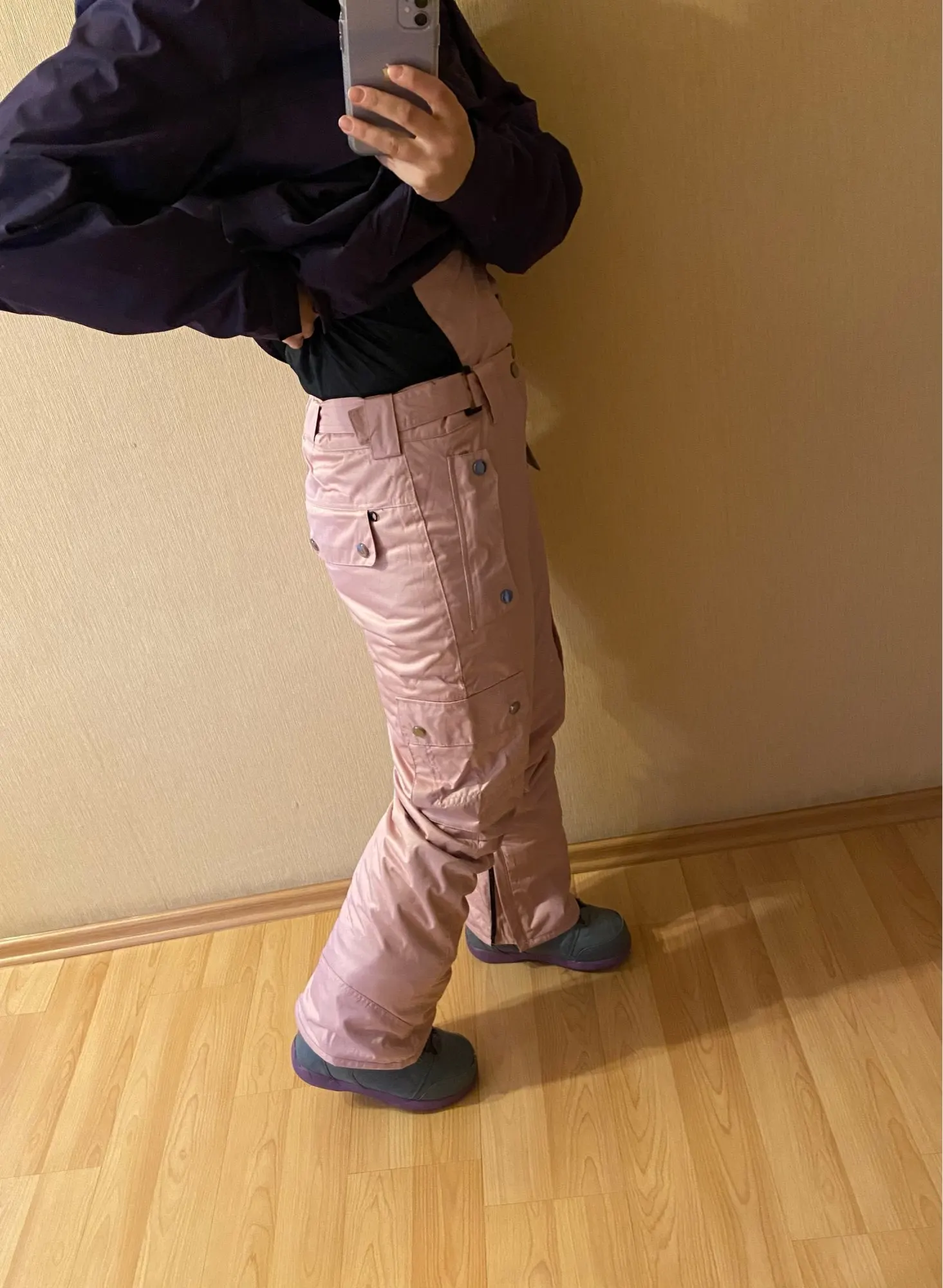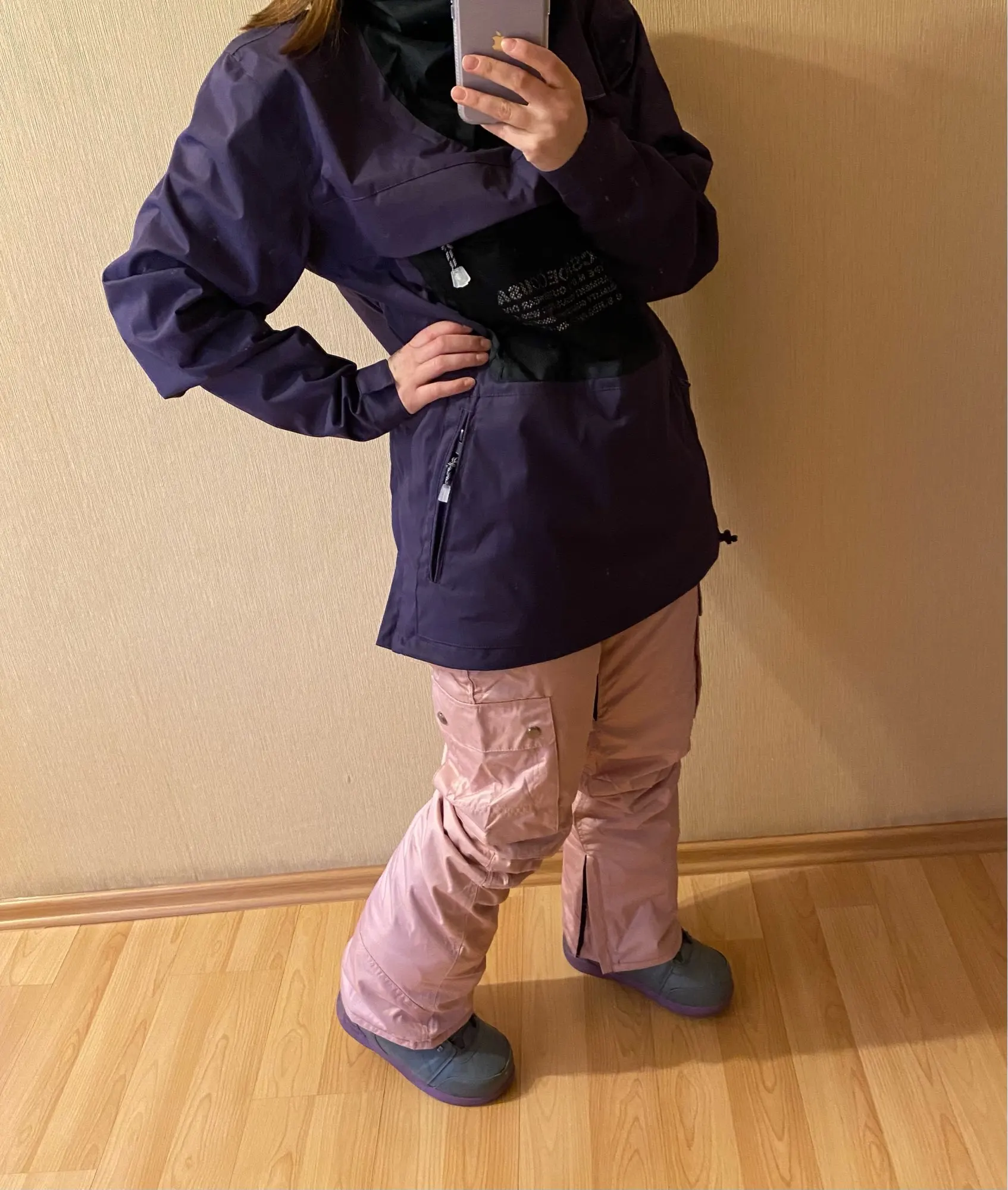 У штанов качество супер! Про размер. Мои параметры талия 72, бёдра 104, вес 68, рост 164. Продавец предложил размер L. Я заказала M и правильно сделала! Так как на размере М придётся липучку на талии перешивать, чтобы штаны держались нормально. В бёдрах ОК, немного свободно, я собираюсь кататься в этих штанах и это даже большой +. На сноубордические ботинки штанины налезли (см.фото)Просто штаны не стала фоткать, тут уже в отзывах есть подобные фотографии. Надеюсь информация кому-нибудь пригодится))