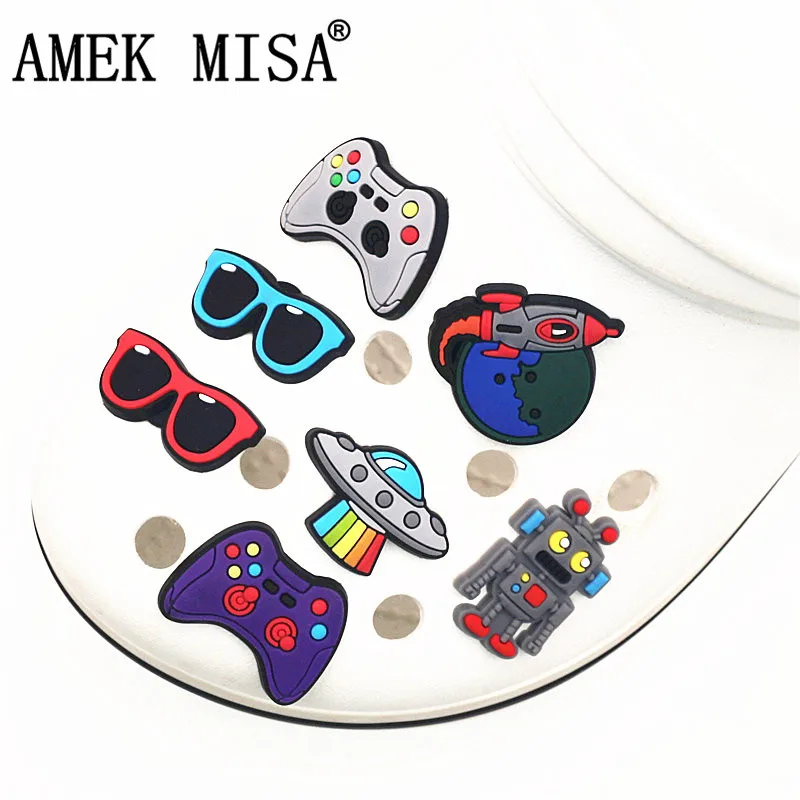 Поштучная распродажа, подвески для обуви, новинка, космический корабль, солнцезащитные очки, аксессуары для обуви, украшение для обуви для croc jibz, детская вечеринка, X-mas, 1 шт.