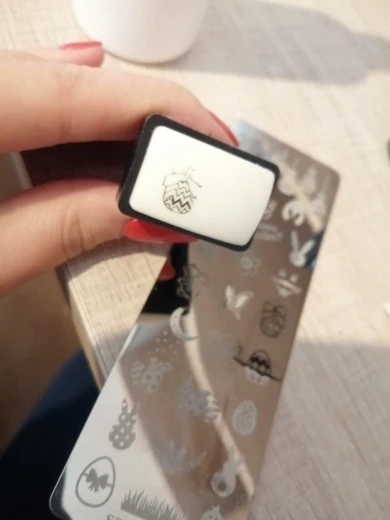 Так же, как на картинке. Пластина имеет красивые дизайны, она приносит много губок и печати. Я еще не пробовал, когда попробую, выложу дополнительный комментарий. Я надеюсь, что это работает хорошо, потому что у него уже был другой прозрачный штамп, и он не работал.
