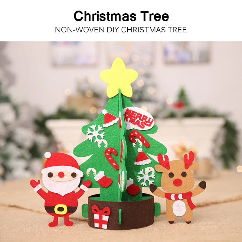 Рождественская елка из фетра для детей, 95 см, с украшениями, подарки для детей на новый год, на Рождество, 2021, настенное украшение на дверь