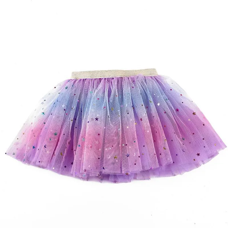 Танцевальная юбка-пачка со звездами для девочек, 3-слойная Тюлевая юбка, детская шифоновая юбка, дети; Юбка для девочки, От 0 до 8 лет