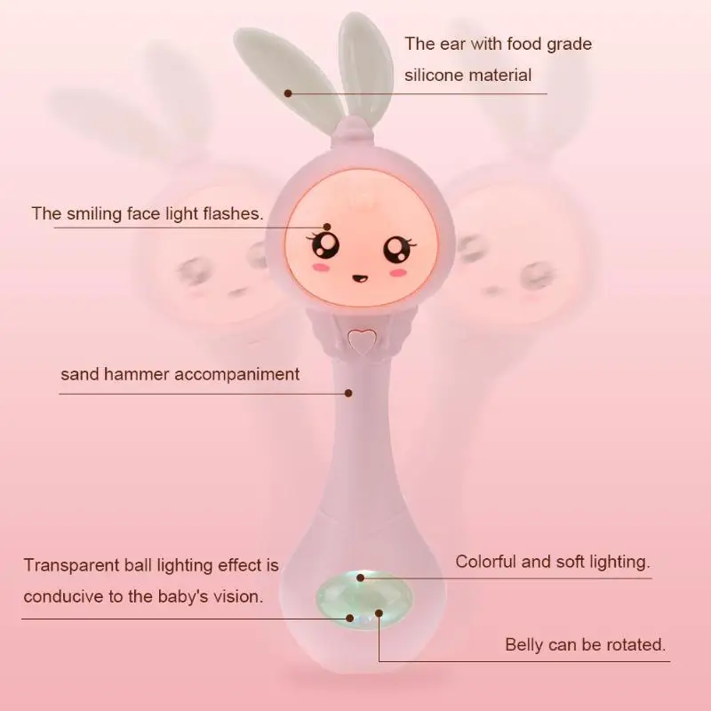 Погремушки для младенца, музыкальные, мигающие, 4 цвета, 0-12 м