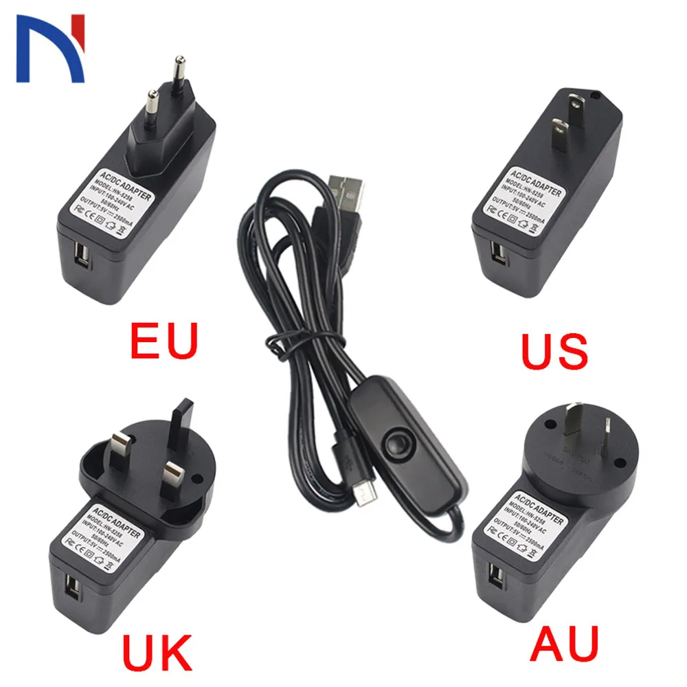 Питание 5 в 2.5A мощность ЕС, США, Великобритания, AU кнопка включения Micro USB адаптер зарядного устройства и кабель для Raspberry Pi 3