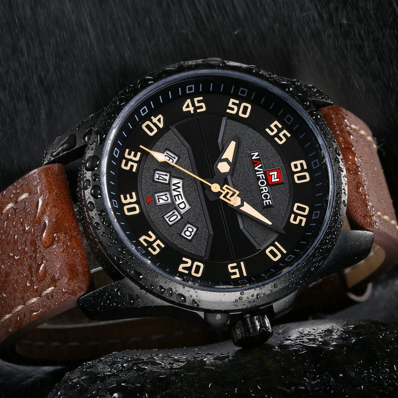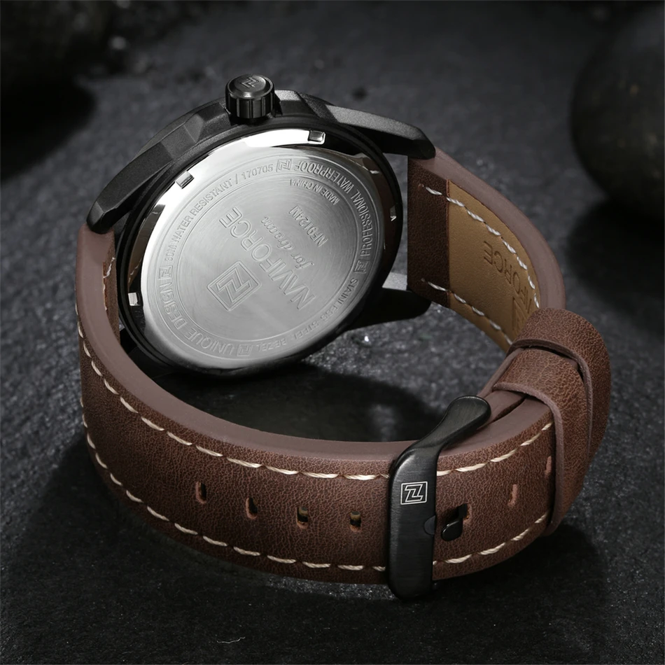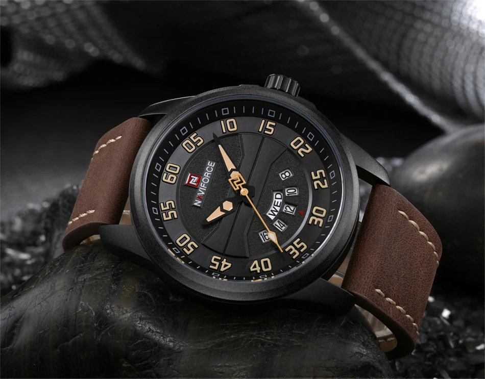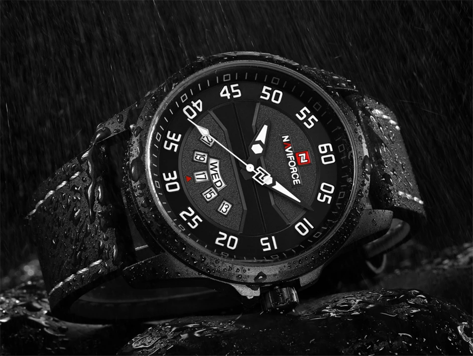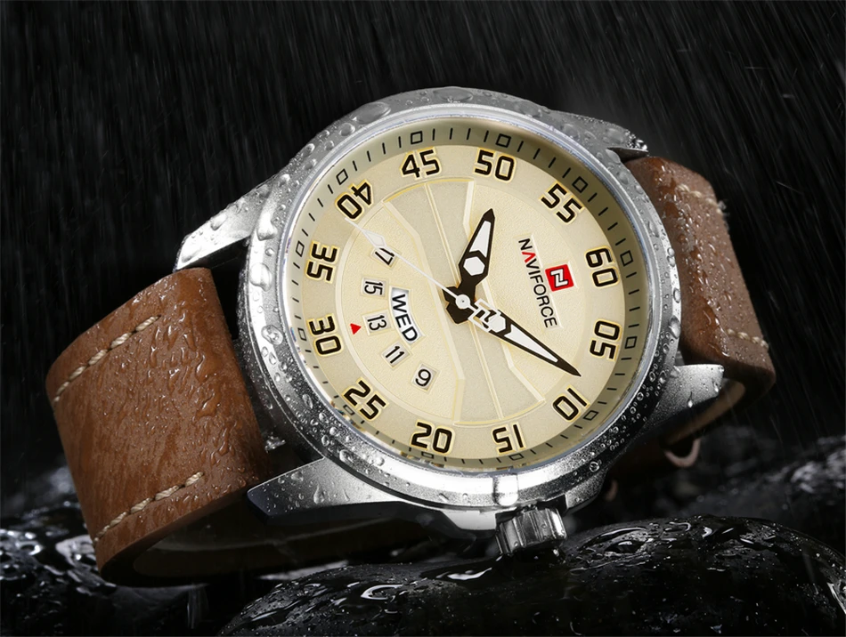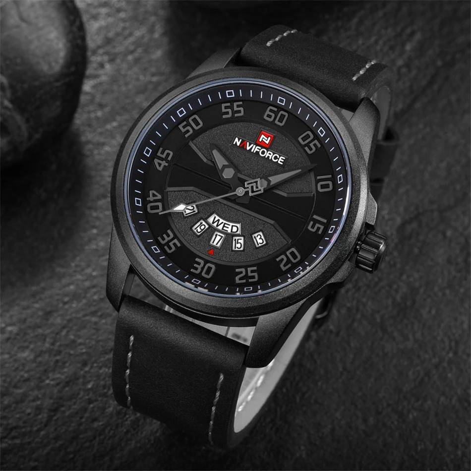 Часы наручные NAVIFORCE Мужские кварцевые, Брендовые спортивные водонепроницаемые в стиле милитари, с датой, с кожаным ремешком