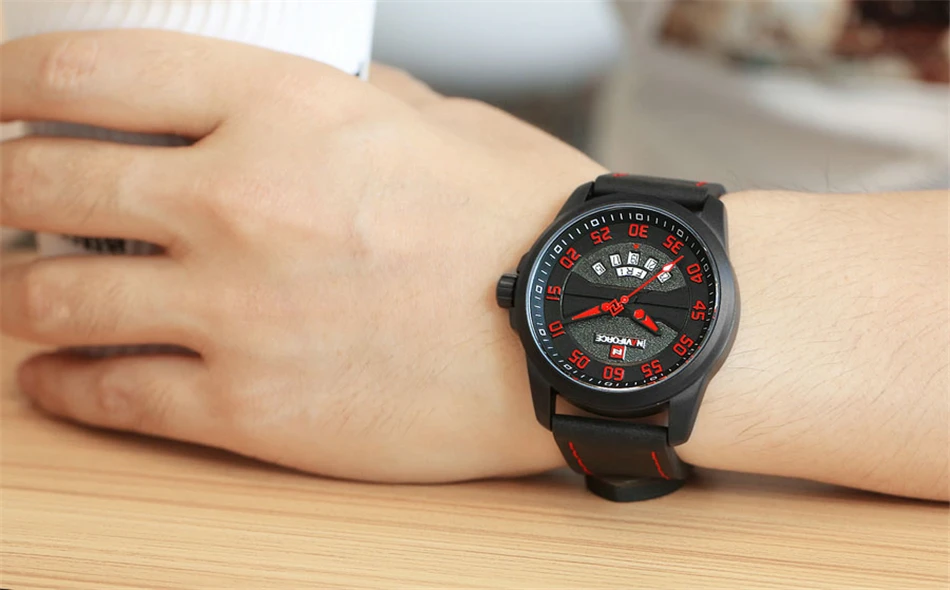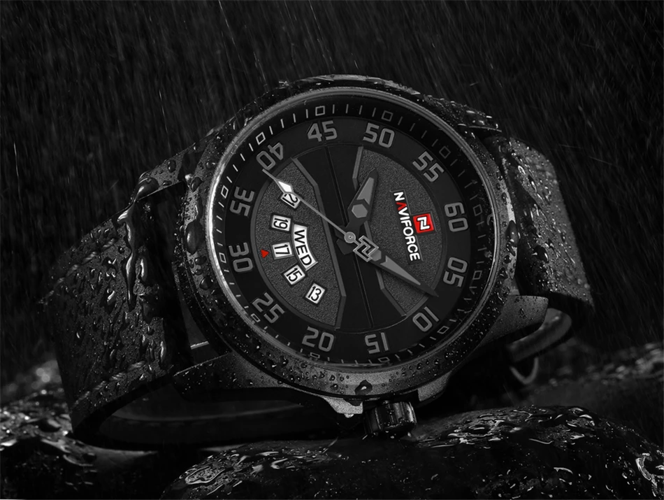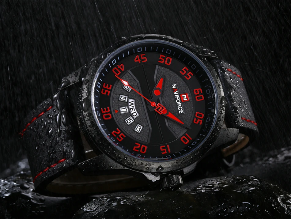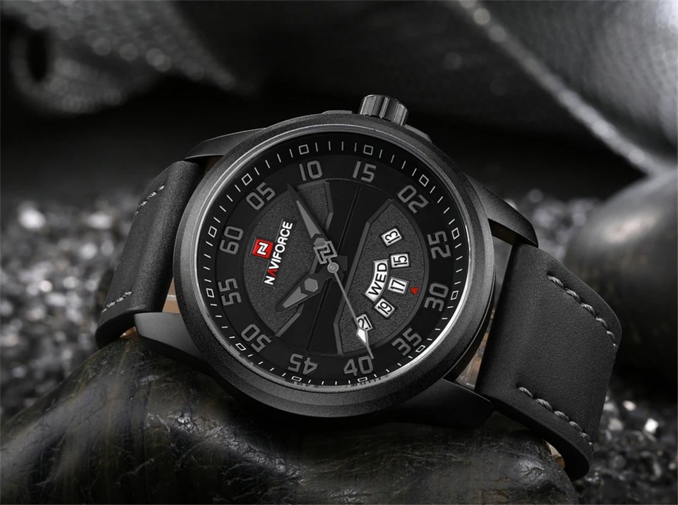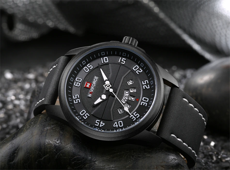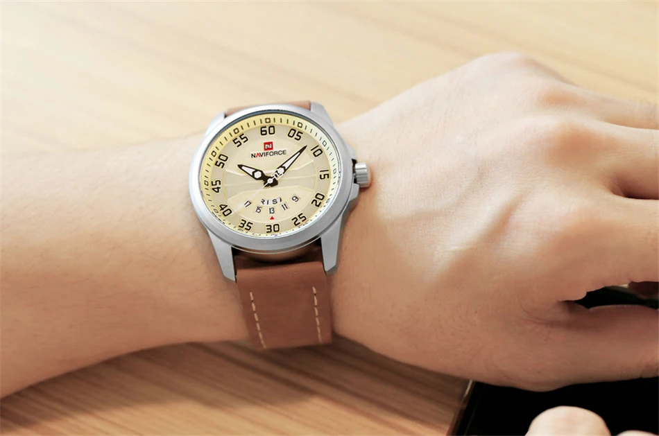 Часы наручные NAVIFORCE Мужские кварцевые, Брендовые спортивные водонепроницаемые в стиле милитари, с датой, с кожаным ремешком