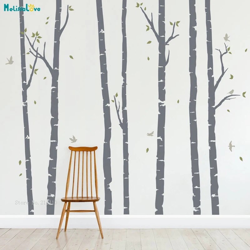 Наклейки на стену с изображением леса шести березы дерева, медведя,...