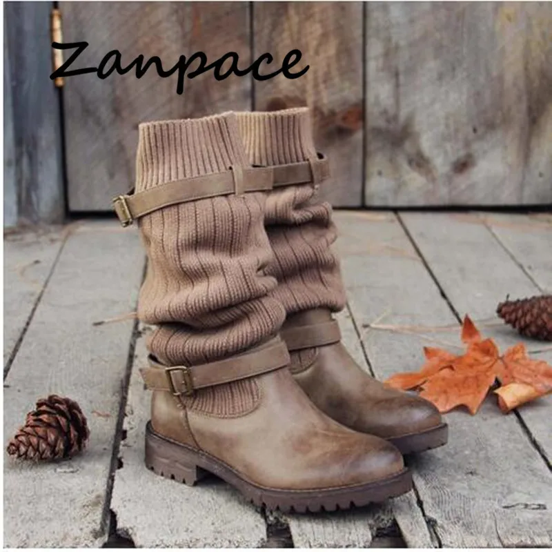 2019 зимние ботинки, женская кожаная обувь из хлопчатобумажной ткани, большой размер 43, шерстяные Винтажные ботинки с пряжкой, эластичные тканевые высокие ботинки мартинсы