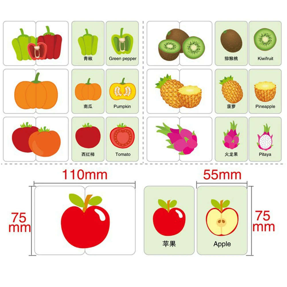 Детские когнитивные карты Монтессори материалы животные фрукты китайский английский обучающие книги головоломки обучающие игрушки для детей
