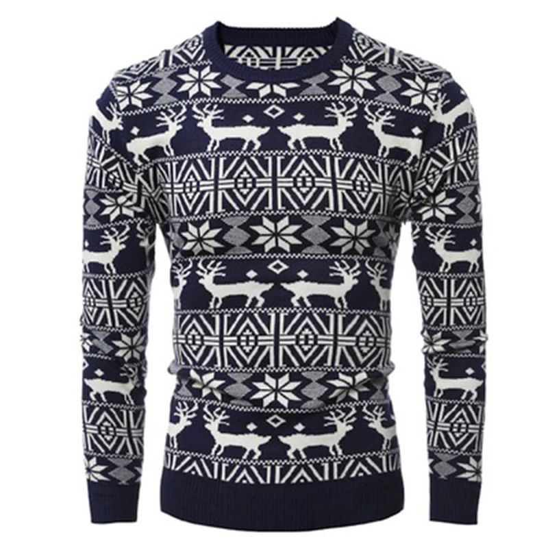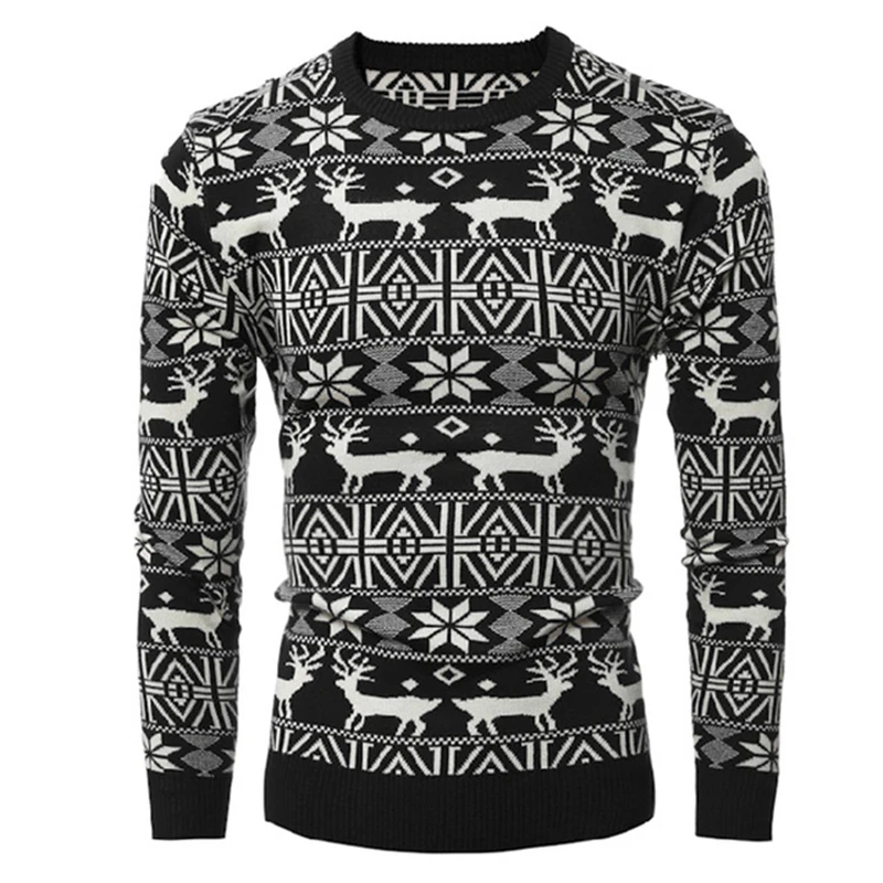 Мужские свитера и пуловеры с длинным рукавом и круглым вырезом, вязаный свитер, рождественский стиль, зимние пуловеры с принтом оленя, Pull Homme