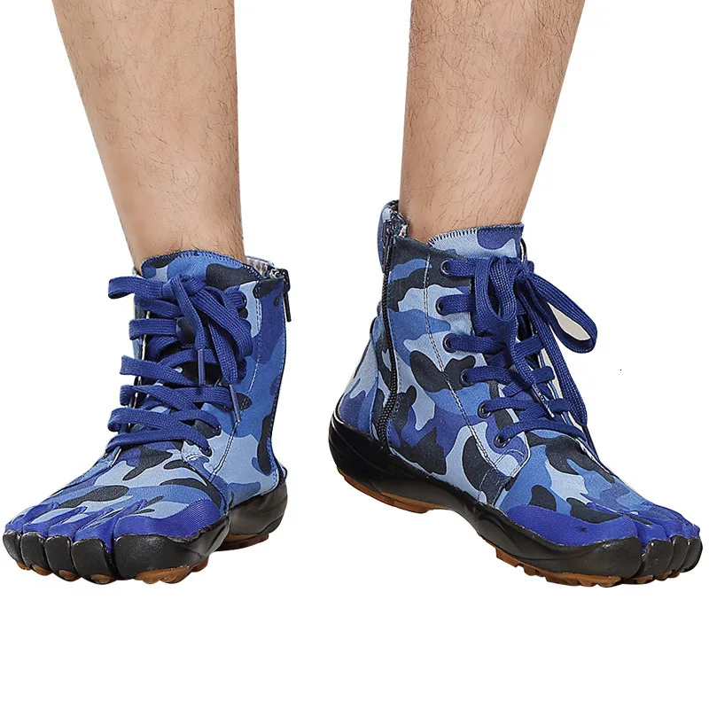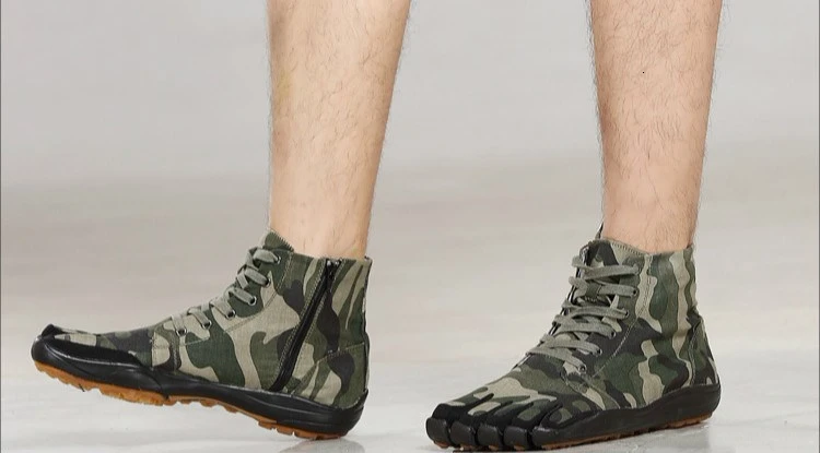 Высокие камуфляжные кроссовки с пятью пальцами для мужчин и женщин, Уличная обувь для альпинизма, походов, тренировок, Нескользящие холщовые кроссовки с пятью пальцами