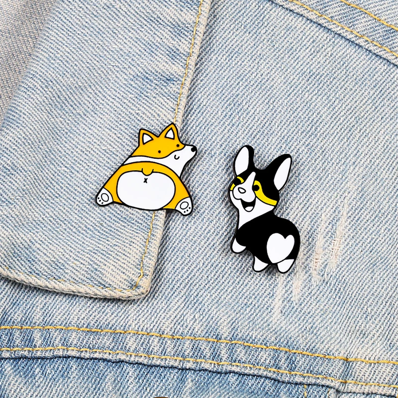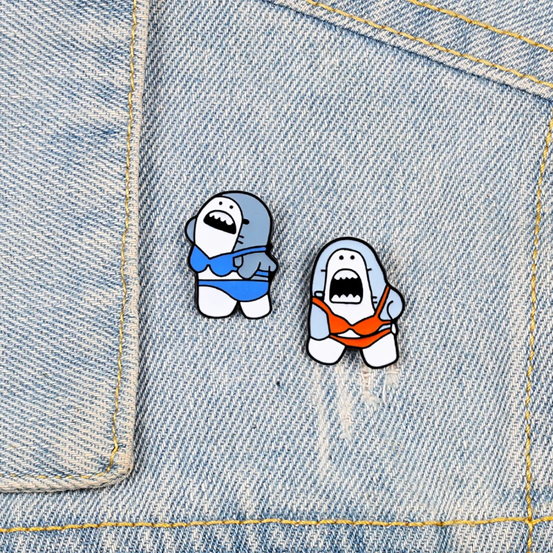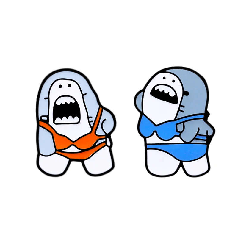 Значки с эмалью в виде мультяшных животных, 2 шт.компл., корги, собаки, синяя брошь, бикини, Акула, кролик, свинья, нагрудный знак брошь, куртки, подарки для друзей, сумка со значком