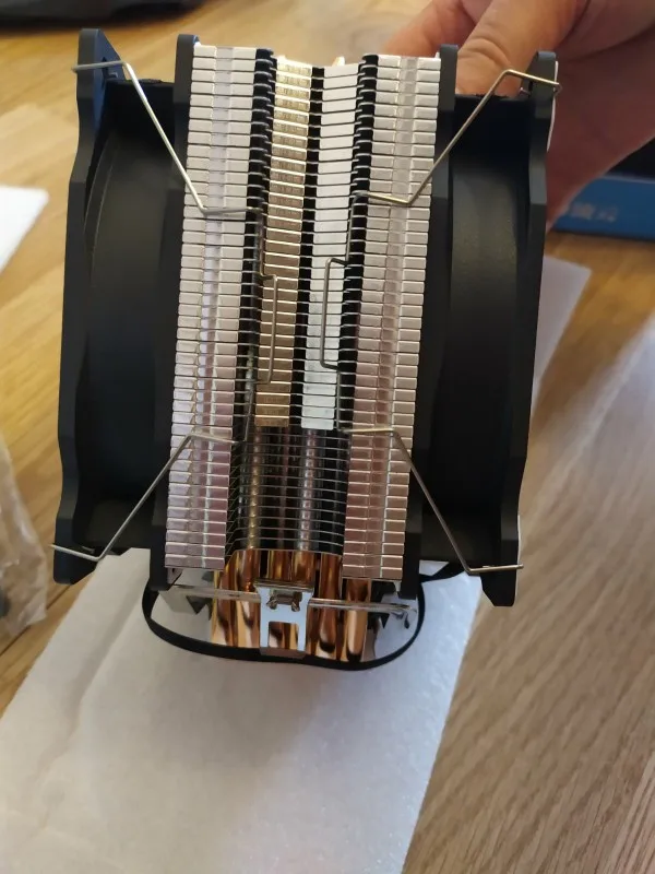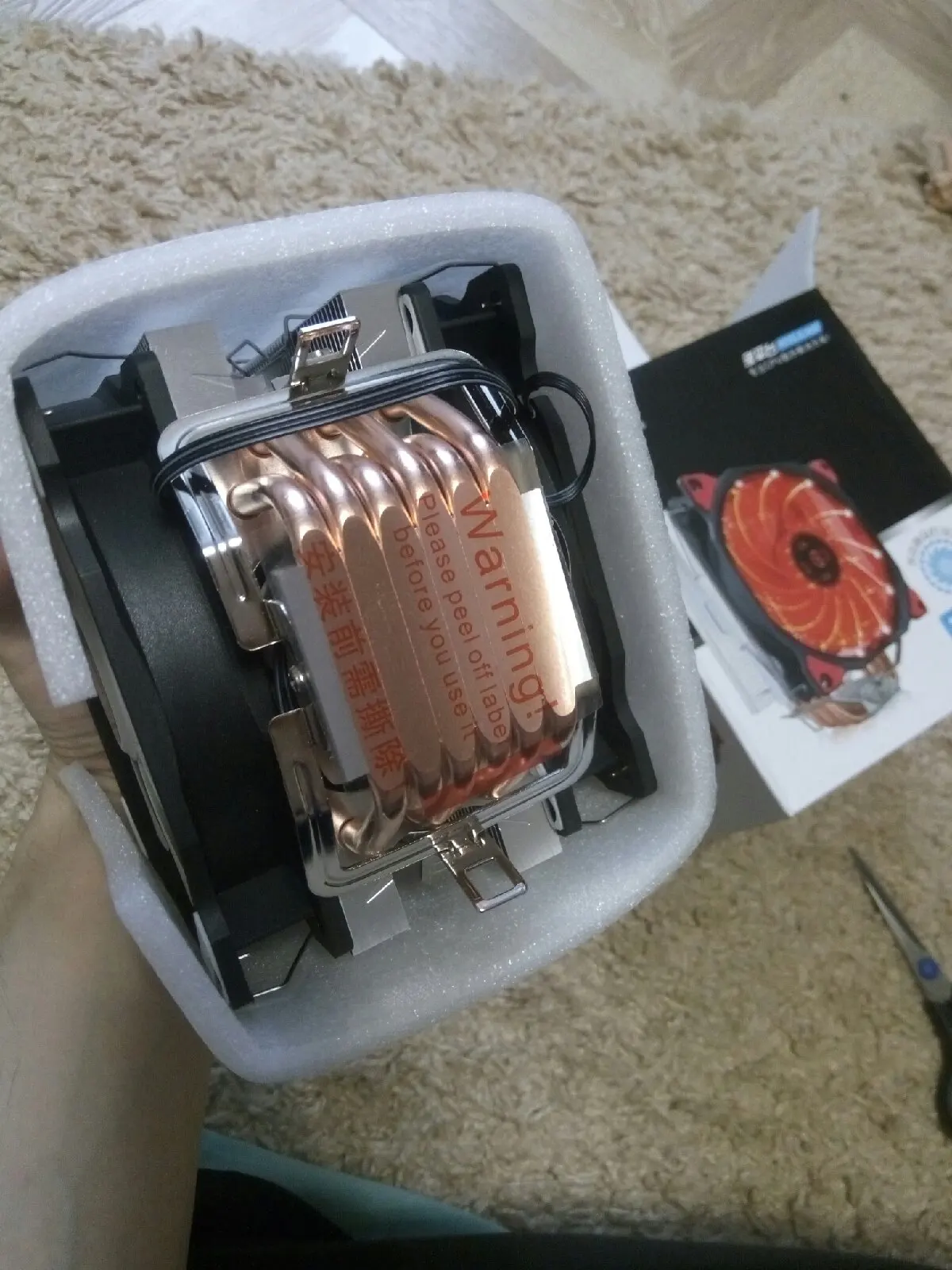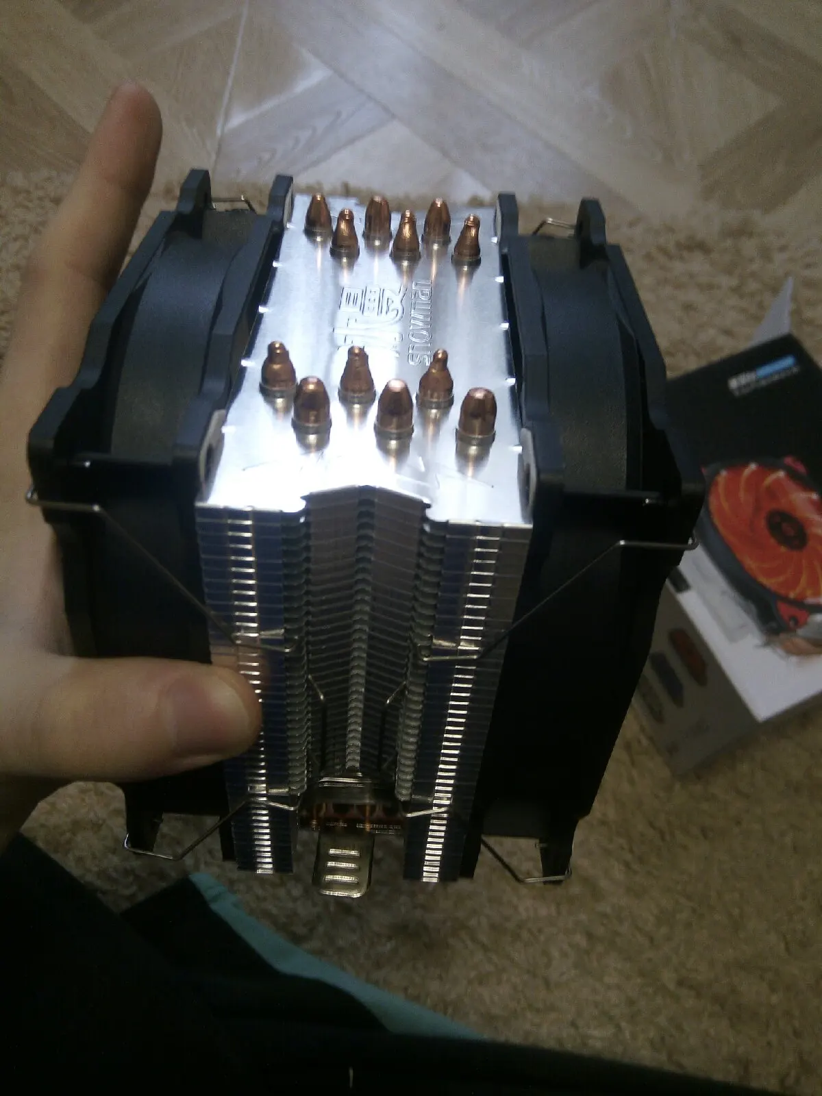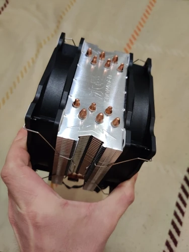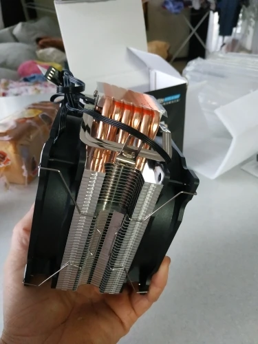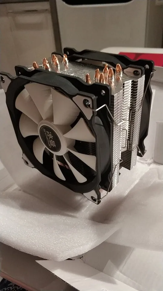 Доставили быстро, упаковка надёжная, ничего не погнулось, не сломалось. Кулер очень тихий, хорошо охлаждает. За эти деньги лучше кулера с 6 трубками не найти. Минусы тоже есть. Установить кулер получилось с большим трудом, боялся что сломаю материнку. Кроме того, передний вентилятор упирается в планку оперативки, но это уже скорее особенность моей материнки.