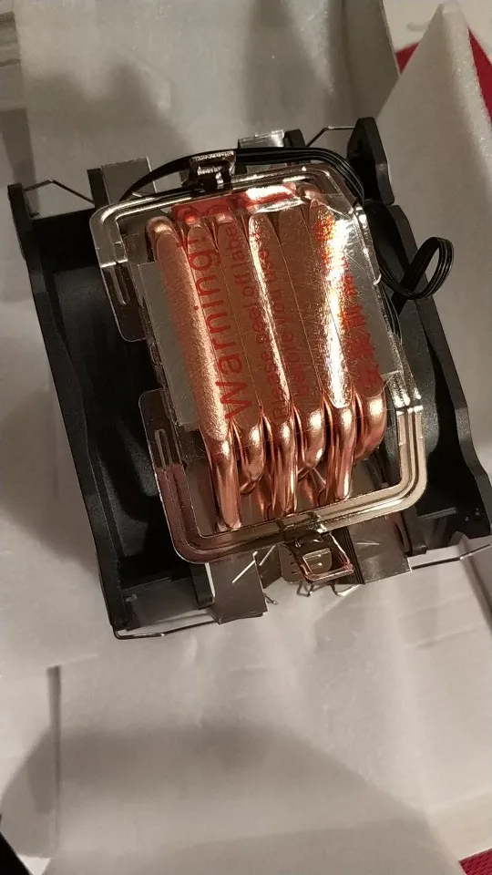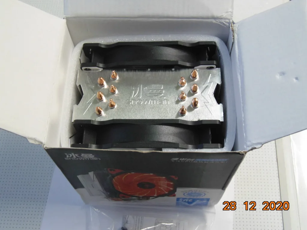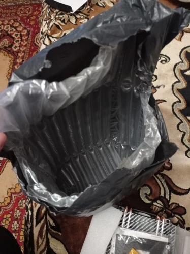 Посылка доехала до Красноярска примерно за 3 недели. Когда я просил продавца упаковать получше, то не имел ввиду пережимать коробку надувной упаковкой до такого состояния) Благо сам кулер никак не пострадал. Испытаю, когда буду пересобирать ПеКарню с новым железом. Пока что ничего плохого сказать не могу. Однако придётся очень аккуратно одевать кулер на сокет, что бы не передавить последний, возможно даже штанги для крепёжных ушей пассатижами надо будет подгибать, а то как-то боязно за материнку.