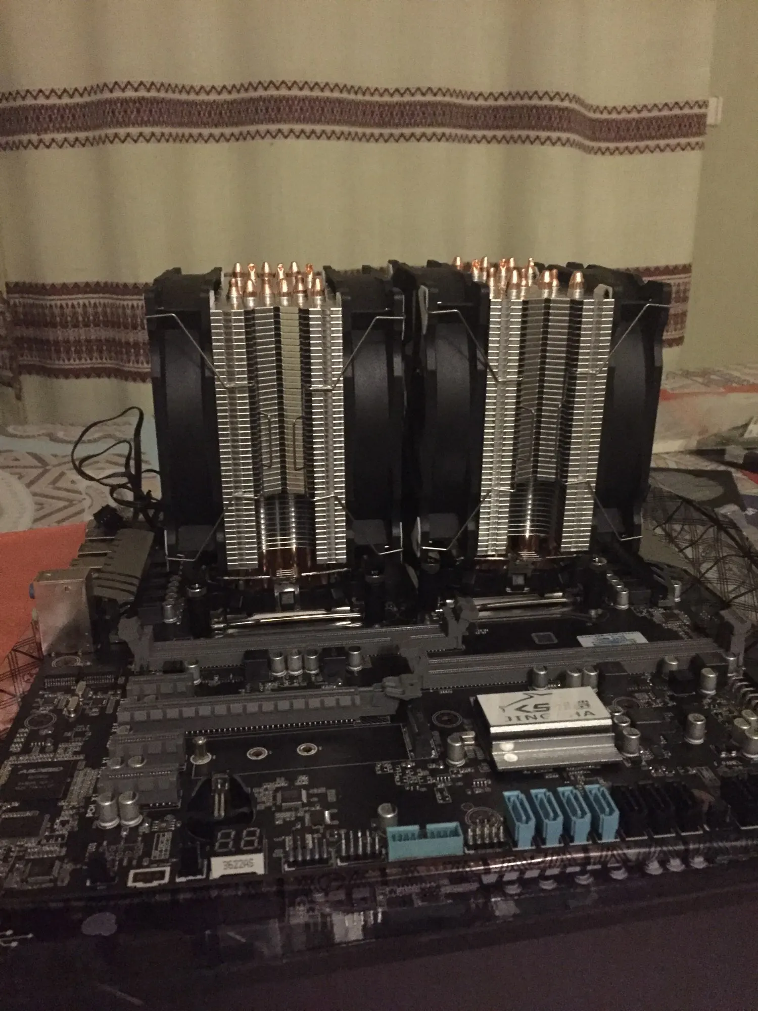 Охлаждение значительно лучше чем у 90 мм, что очевидно. Единственное с чем пришлось повозиться, это габариты. Вплотную два таких куллера не расположить на обычных китайских платах с двумя сокетами. Если это сделать будут проблемы с потоком воздуха, перегрев неизбежен. Пришлось один из кулеров прикручивать к корпусу через виброболты, к счастью, разъёмы на кулерах стандартные. На качестве охлаждения это не сказалось. Для двух процессоров 2678v3 в нагрузке выдает температуру порядка 50 C. Главное правильно переенаправить потоки воздуха в корпусе.