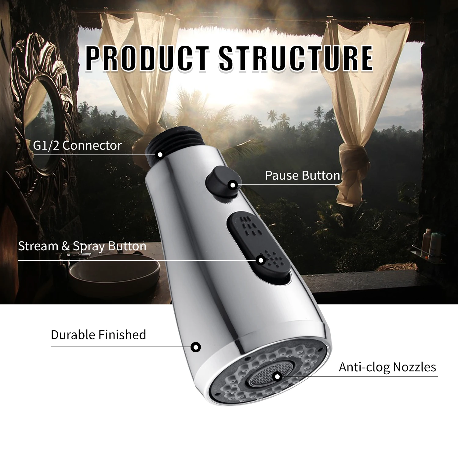 [Трехфункциональная распылительная головка] распылитель для раковины с мягким распылением, сильным потоком и водосберегающей паузой на выбор, подарит вам прекрасные ощущения от очистки.
