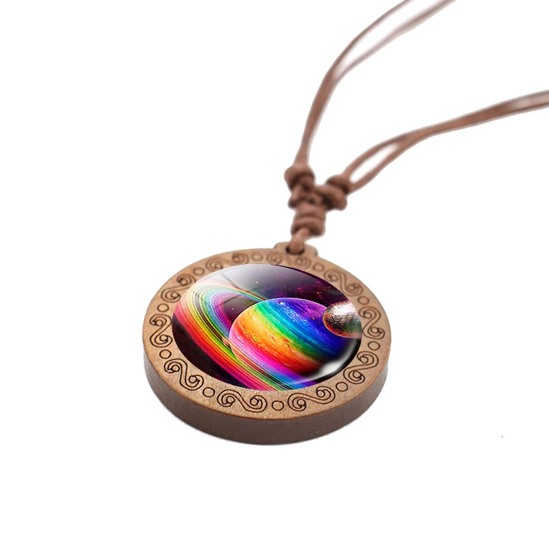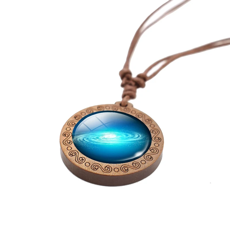 Ожерелье с галактикой, винтажная деревянная подвеска, стеклянный ка...