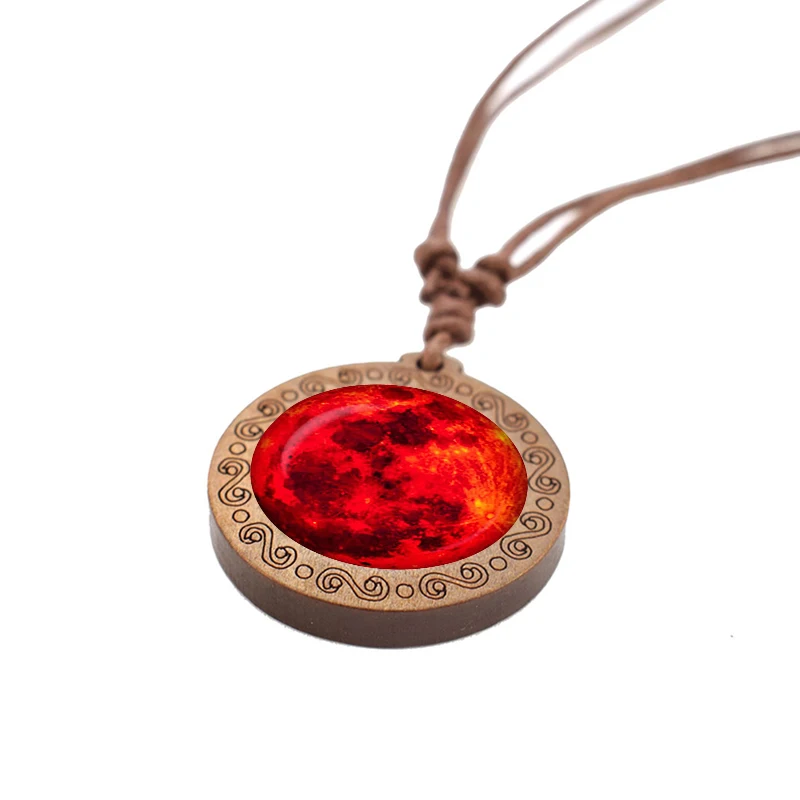 Ожерелье-цепочка с подвеской в виде Луны, стекла, кабошона, деревянная подвеска, солнечная система, земля, Марс, Сатурн, Юпитер, планеты, ожерелье, ювелирные изделия