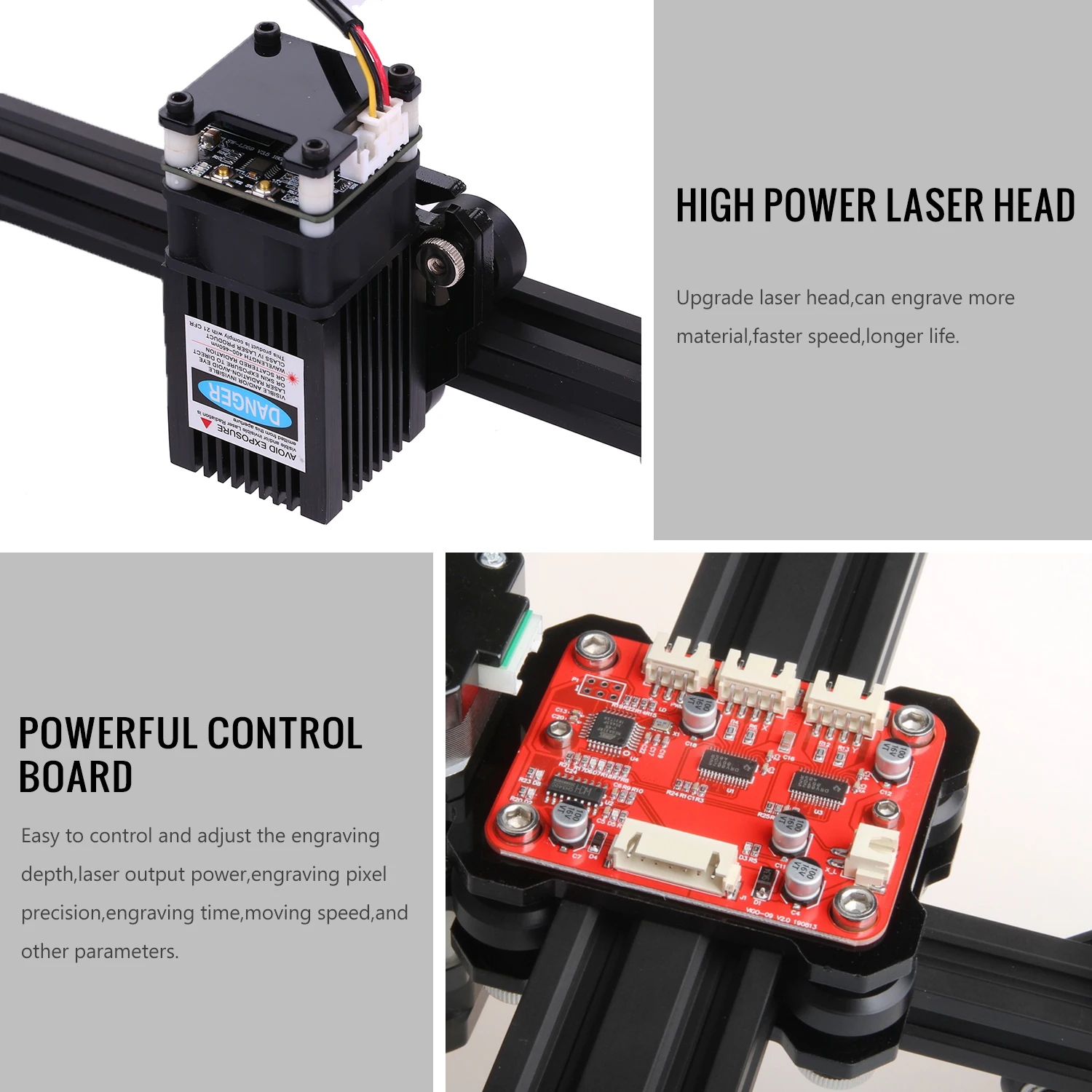 Этот совершенно новый VG-L7 специально разработан для лазерной гравировки DIY с профессиональным программным обеспечением управления, от разработки платы управления до организации программного и аппаратного обеспечения, У нас есть команда инженеров аппаратного и программного обеспечения, чтобы предоставить вам максимальный портативный опыт. Эта лазерная гравировальная машина имеет функцию резьбы и резки. Он поддерживает регулируемая мощность лазера, удобен и подходит для всех видов легкой резьбы материалов.Особенности:Лазерный гравировальный станок-это портативный гравировальный станок с простой установкой, безопасностью и простотой в эксплуатации.Лазерный модуль поддерживает длительную непрерывную работу, легко заменяет компонент и может быть непосредственно загружен без инструментов.Гравировки точность определения его местонахождения составляет до 0,05 мм, гравируемая площадь составляет 330*190 мм, который может записывать фотографий или текста очень четко и с высокой скоростью и низким уровнем шума.Подключи и работай, прост в использовании. Подключите usb-кабель к плате, установите программное обеспечение и начните гравировку. Требуется минимальная сборка. Всего несколько винтов от подключения к ноутбуку.Независимо разработанное программное обеспечение управления и плата управления, бесшовное соответствие производительности лучше, более стабильная и более плавная работа. Adajustable параметры управления и коррекции параметров, более высокая точность и лучший Гравитационный Эффект серого.Поддержка импорта и гравировки или резки файлов формата САПР, поддержка бесплатного ввода текста, автоматический вызов шрифта внутри компьютера и произвольная Настройка формата и размера шрифта.Программное обеспечение в режиме реального времени контролирует глубину гравировки, выходную мощность лазера, точность гравировки пикселей, время гравировки, скорость движения, размер текста с выгравированным изображением и другие параметры.BX15 BX20 Новая функция: Отрегулируйте лазерный фокус на 10 мм, этот гравировальный станок способен вырезать материалы из нержавеющей стали и алюминиевый черный анод, за исключением меди, алюминиевого сырья.Примечание:Laserhead требует регулировки фокуса, а Focus dot-самая мощная часть.Как настроить фокус:Поверните фокусирующую головку перед лазерной головкой. Самая маленькая и яркая точка-это фокус. Обычно рекомендуется отрегулировать laserhead на низкий светильник (установка по/нажмите кнопку «низкий светильник» в модуле, в модуле «низкий светильник» с красной вспышкой), после регулировки фокуса Поверните назад в режим сильный светильник, чтобы сделать зависание wrok (расстояние фокусировки appr. 5-8 см)Характеристики:Материал: алюминиевый сплав + акрилОсновной цвет: черныйИсточник питания: 100-240 В переменного тока на выходе 12 В 5АТип вилки: ЕСТехнические характеристики лазера: BX2.3/BX3.5/BX5/ BX7/ BX15/ BX20 (опционально)Длина волны лазера: 405нм, 445нмПоддержка ОС ed: Win 7 и выше (не поддерживает систему XP и ниже, не поддерживает систему Apple MacOS)Плата контроллера: VigoTecПорт связи: Mini USBШагового двигателя: 42 шаговый двигатель, угол поворота 1,8 °.Поддержка программного обеспечения ed: Программное обеспечение гравировального Станка использует vigoengaverl7, поддержка GRBL, benbox, elekscam, если у вас есть прошивка, которую вы можете использовать.