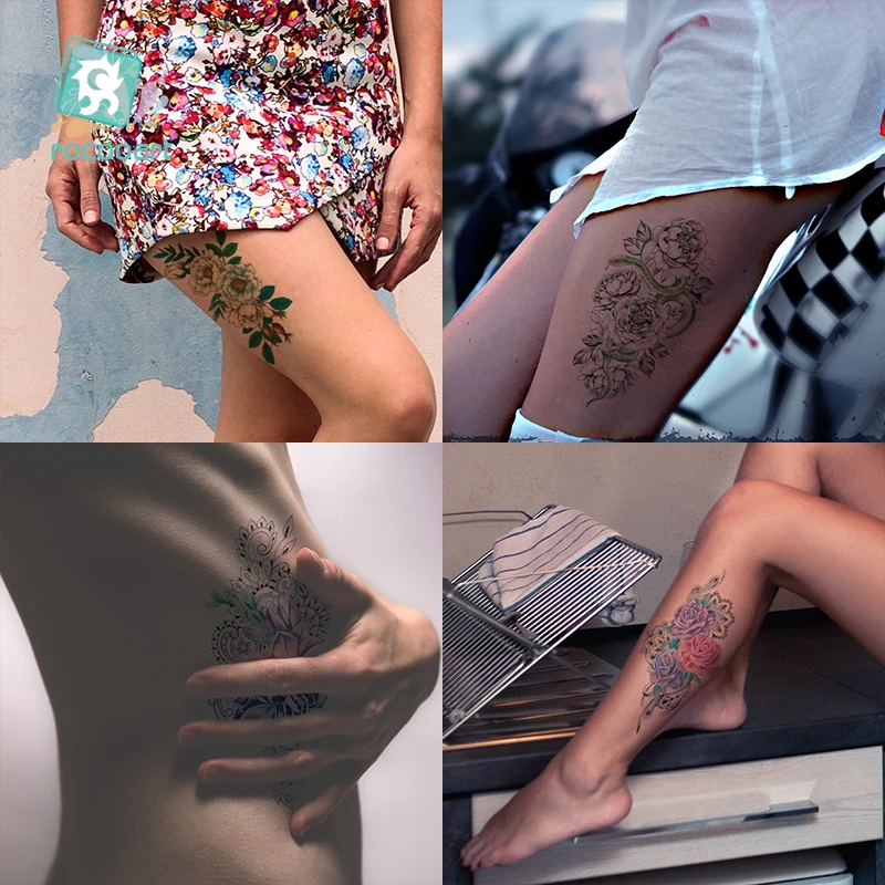 Женская временная татуировка Rocooart, наклейка в виде змеи, цветка, пистолета, татуировки на руку, боди-арт, большая поддельная татуировка, наклейка 21x10 см
