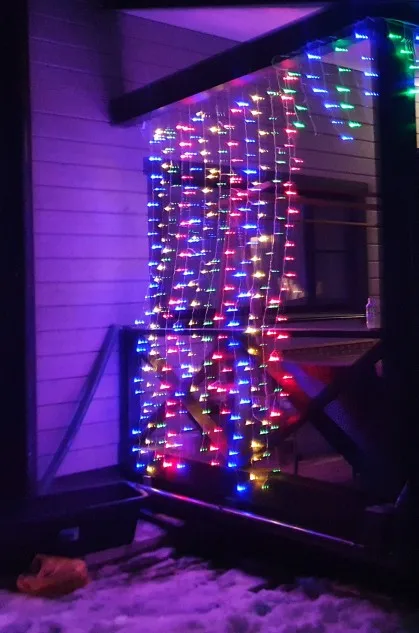 Гирлянды супер. Повесил на улице, монтировал в -23. Хотя провода задубели, ни где не сломалось. Плюс их в том, что их подноса зацепить в одну нить и включить в одну резетку