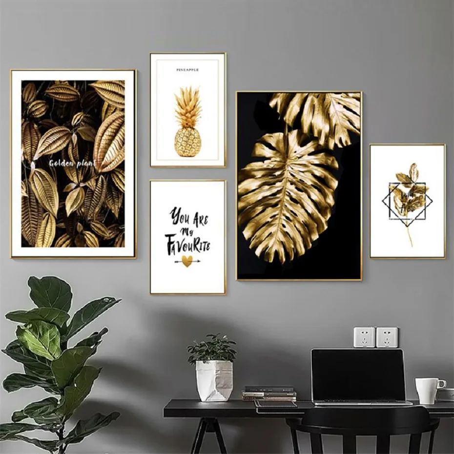 Любовь цитаты черные золотые листья ананаса абстрактные картины на холсте роскошные стены искусства Плакаты картинки для Гостиная домашний декор