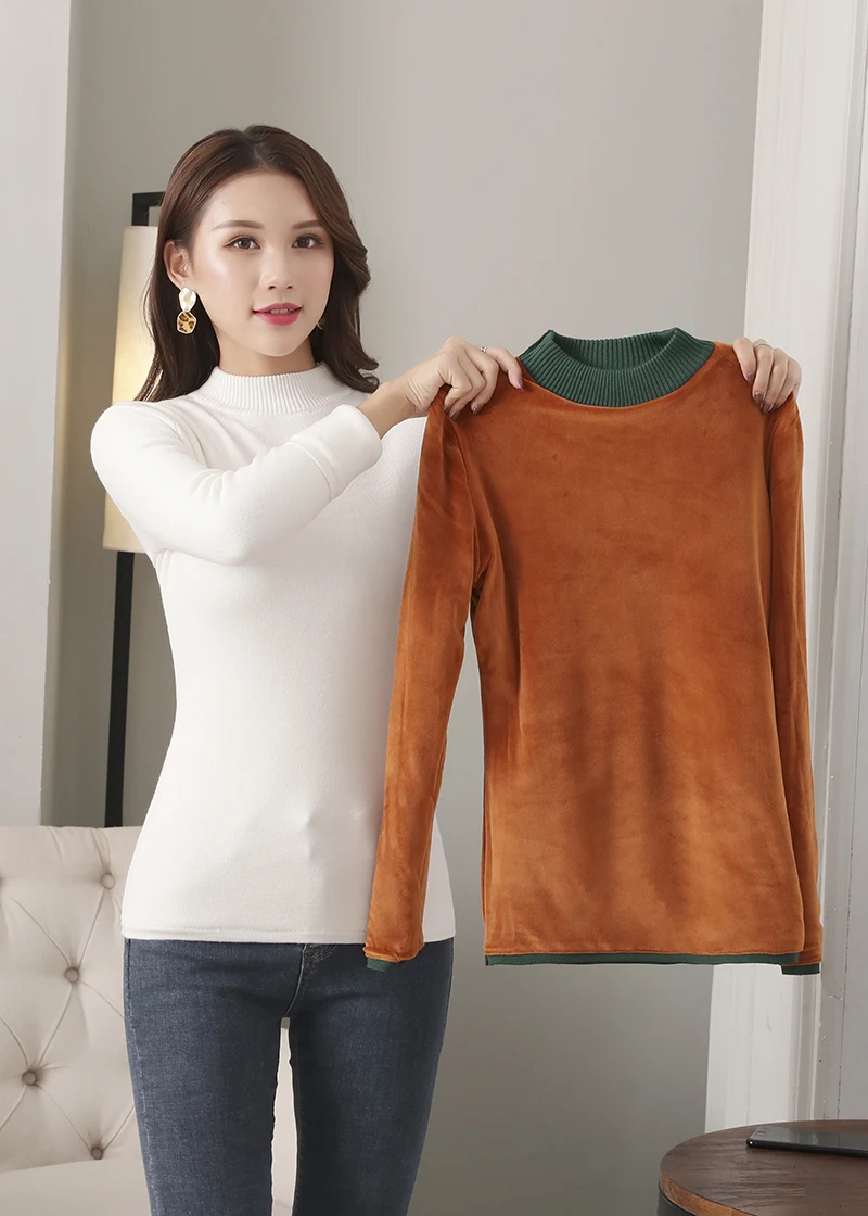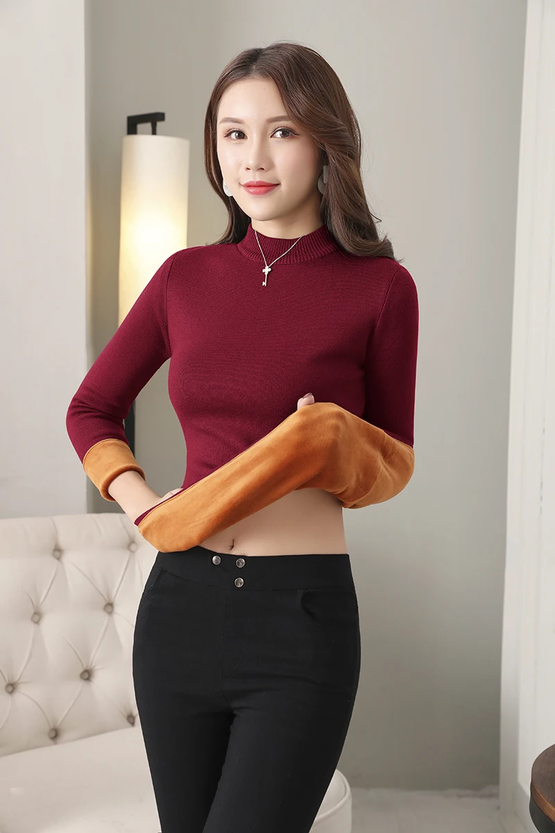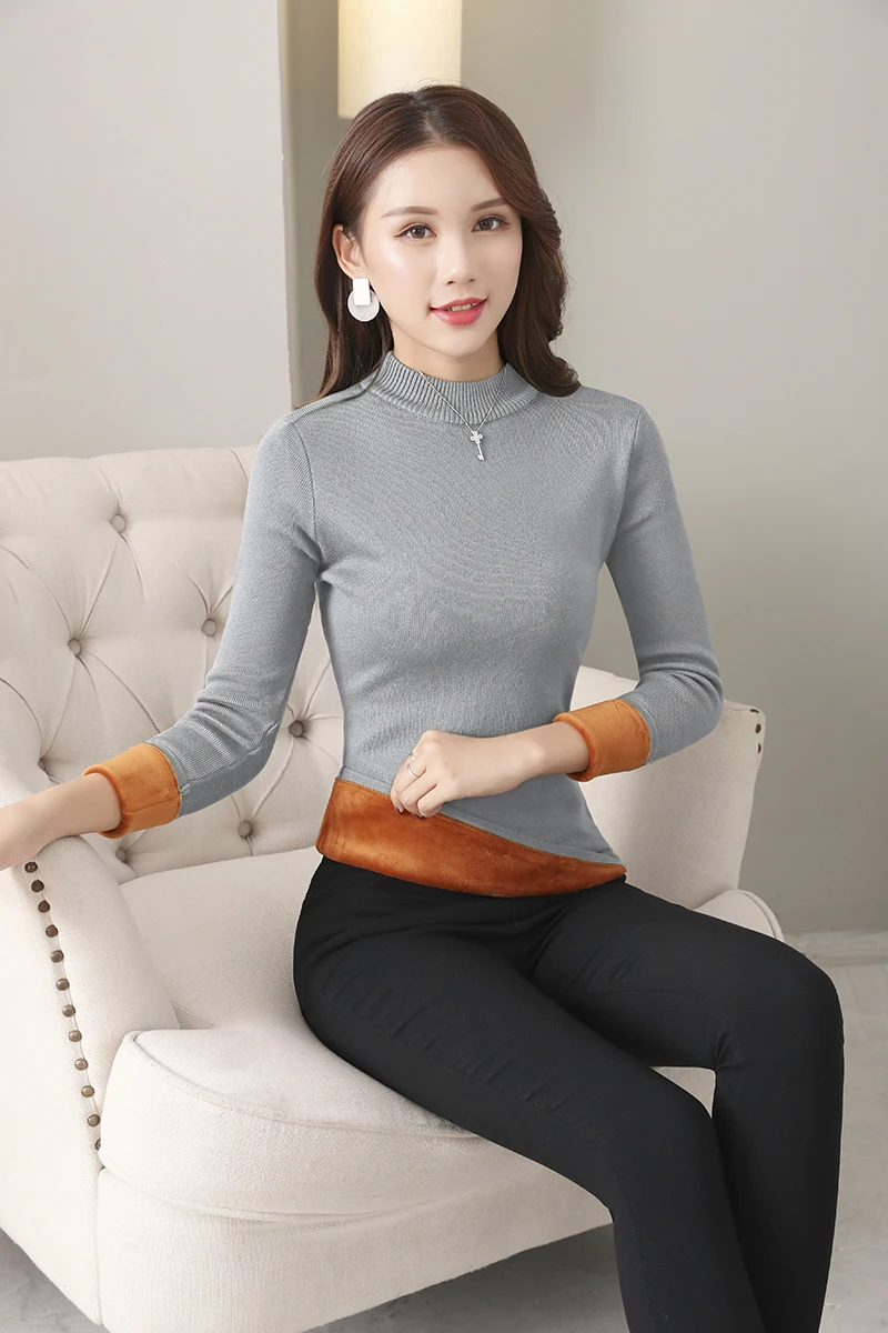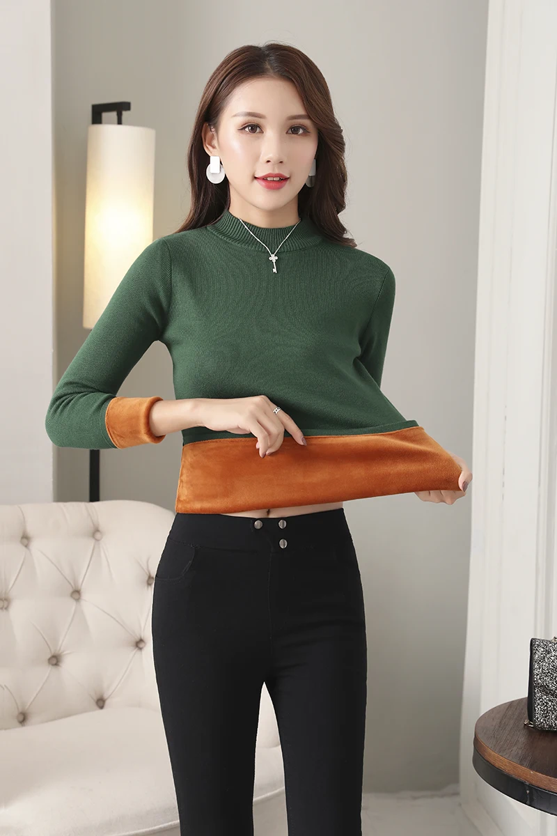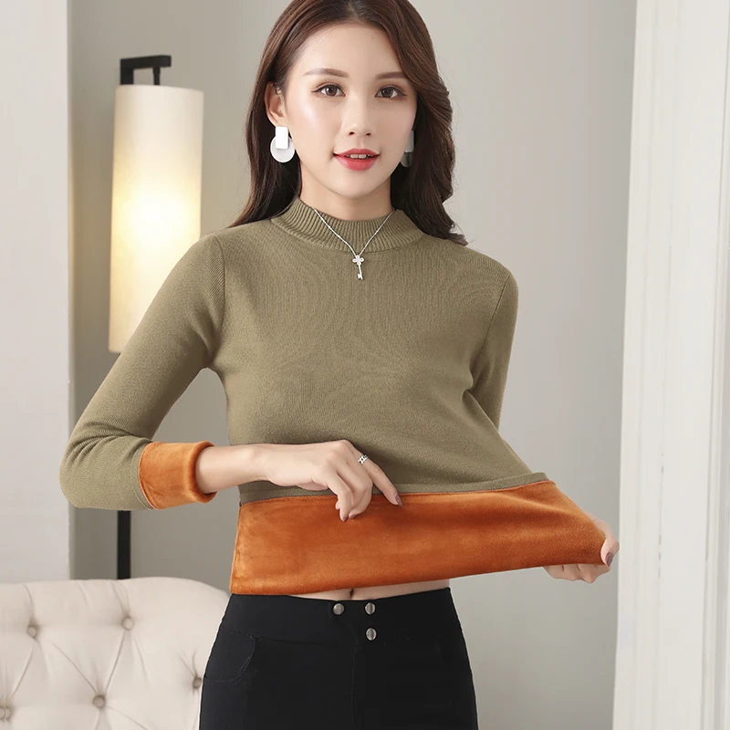 Теплая Вельветовая кофта для женщин, однотонная, с круглым вырезом, зима 2021