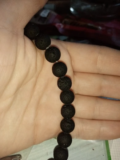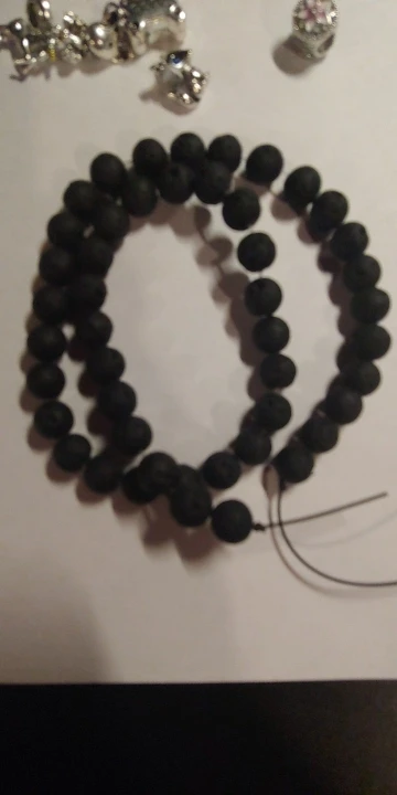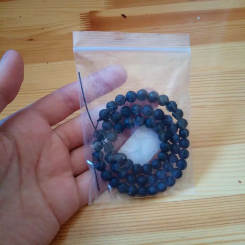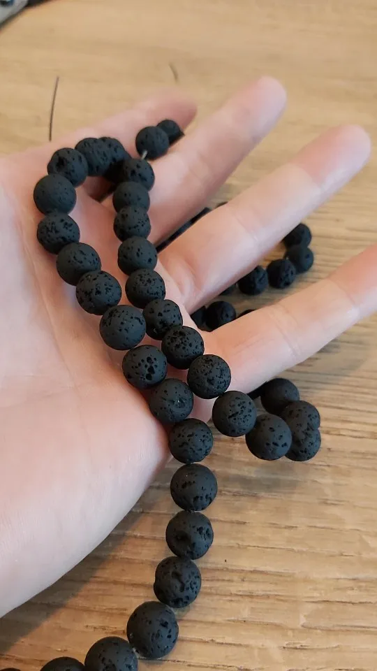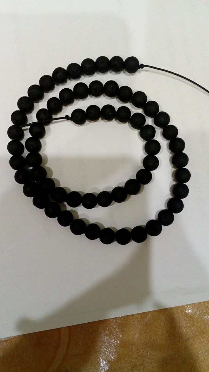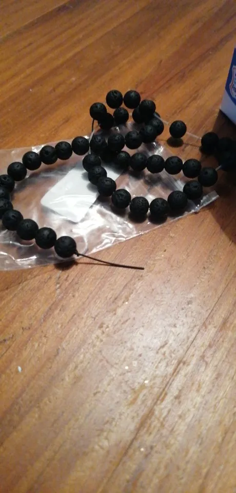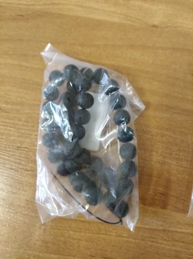 Бусы красивые, видно, что их покрасили черной краской, был запах, но я промыла их водой, запах исчез, краска не смывалась. Не определила натуральный камень или нет. Возможно он был серый неприглядный и его покрасили для вида. Спасибо продавцу, быстро отправил. Сделала браслет - очень красивый получился