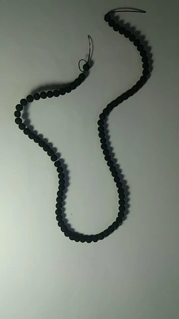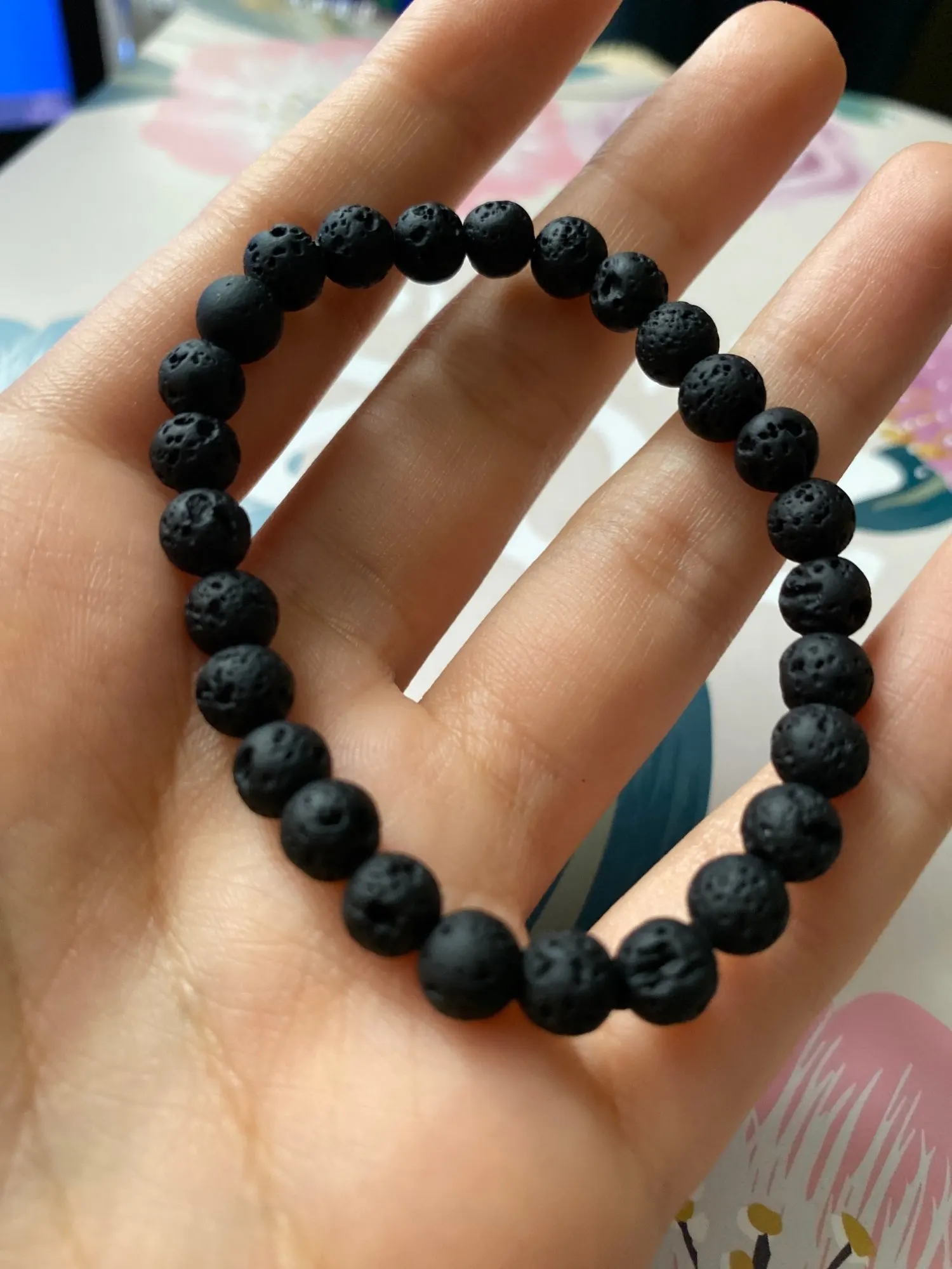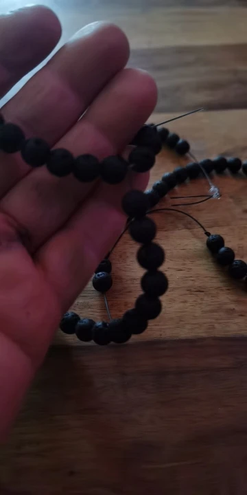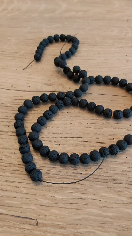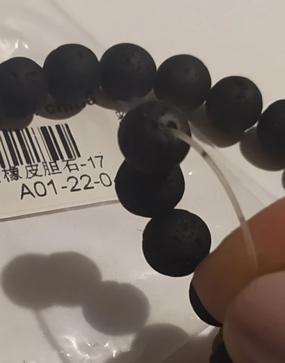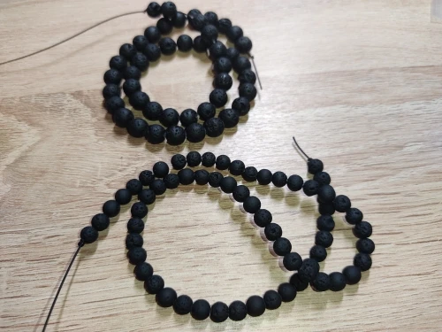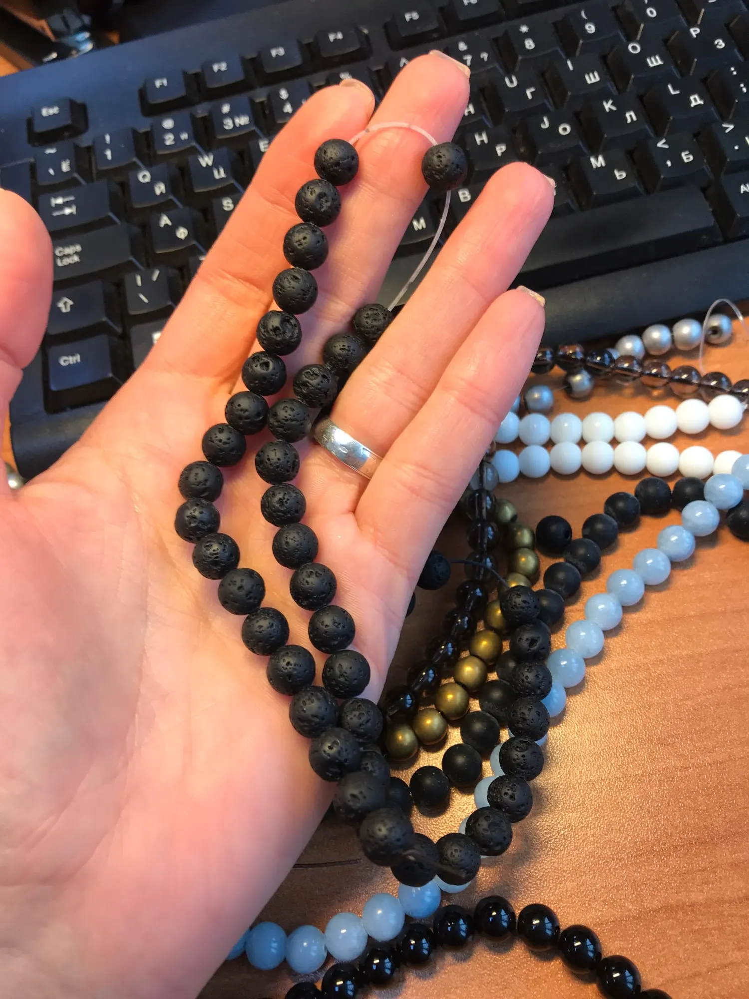 Бусы красивые, видно, что их покрасили черной краской, был запах, но я промыла их водой, запах исчез, краска не смывалась. Не определила натуральный камень или нет. Возможно он был серый неприглядный и его покрасили для вида. Спасибо продавцу, быстро отправил. Сделала браслет - очень красивый получился