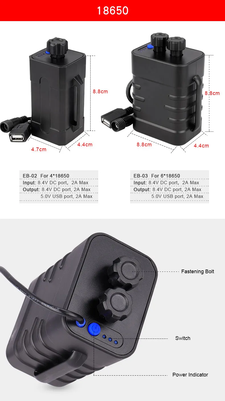 Deemount Велосипедное светильник Мощность коробка 8,4 V 5V двойной Напряжение Выход для 246 1865026650 батареи Wремень Дополнительный 100-240V для адаптера переменного тока