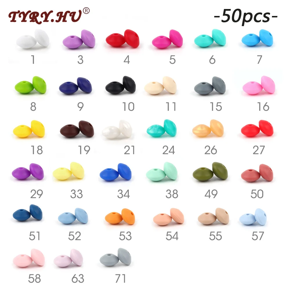 50 шт., силиконовые бусины для прорезывания зубов, из пищевого силикона