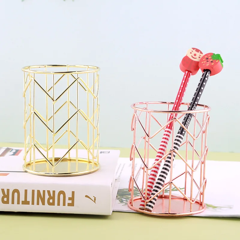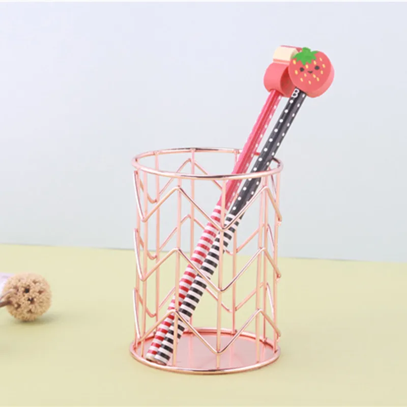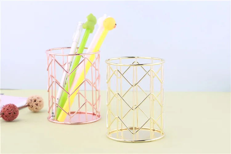 1 шт. розовое золото проволочная сетка для хранения косметических принадлежностей, коробки цилиндрической формы чехол для хранения губная помада кисточки ручка держатель Организатор Железный Держатель для офиса и школы