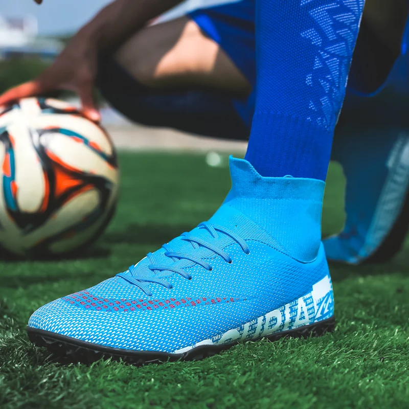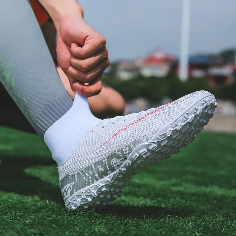 Уличные мужские футбольные ботинки ZHENZU для мальчиков TFFG, футбольные бутсы с высоким воротником, Детские тренировочные спортивные кроссовки, размер 35-44