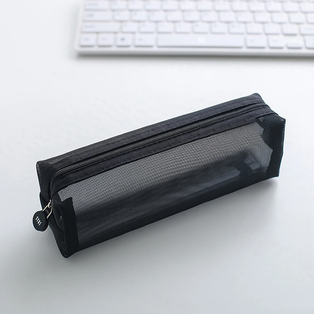 Однотонный прозрачный сетчатый чехол для карандашей на молнии сумка для хранения ручек, школьный чехол для карандашей, кавайный нейлоновый чехол для ручек, подарок, школьные принадлежности