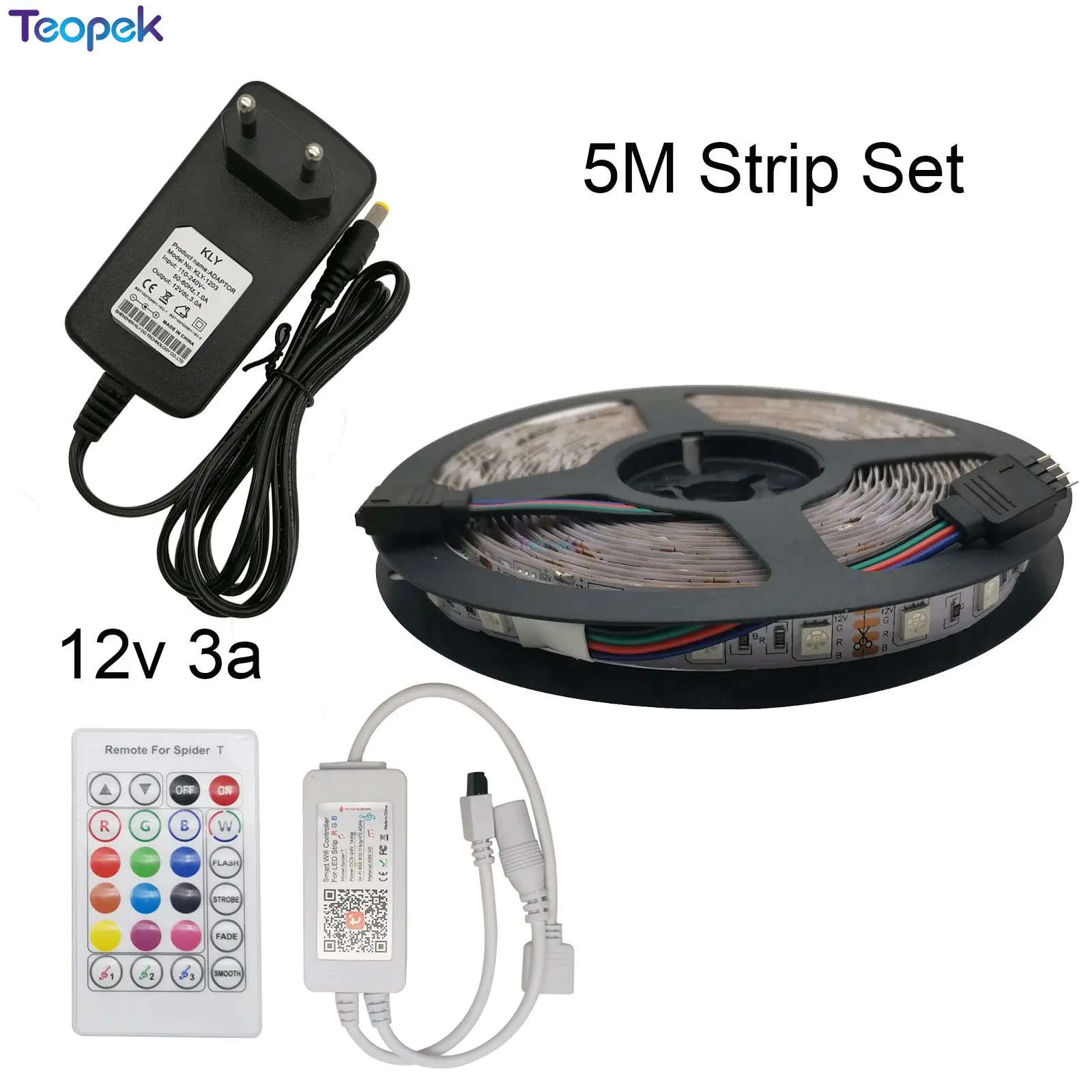 Гибкая светодиодная лента RGB 5050 SMD с Wi-Fi управлением и адаптером питания, 5 м, 10 м
