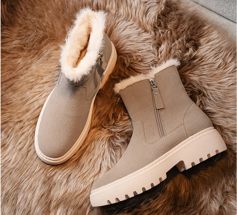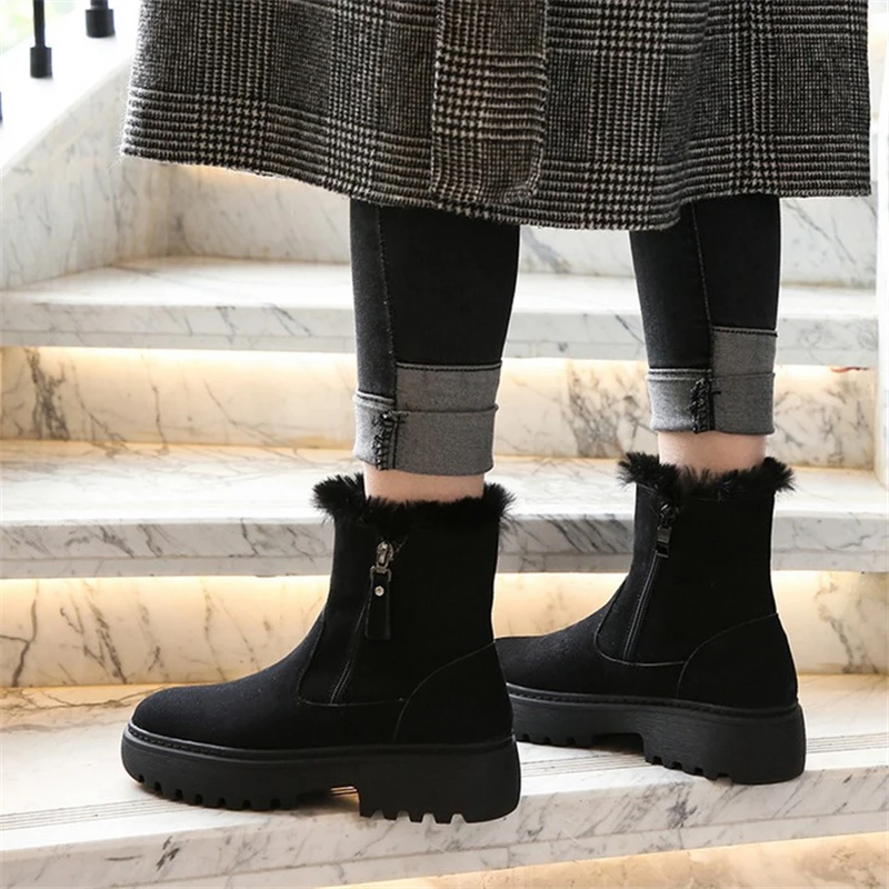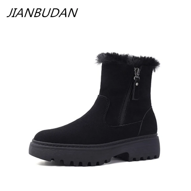 JIANBUDANженские зимние ботинки; Большие размеры 34-43; Женская обувь на плоской платформе; Модные повседневные теплые короткие ботинки на меху на молнии