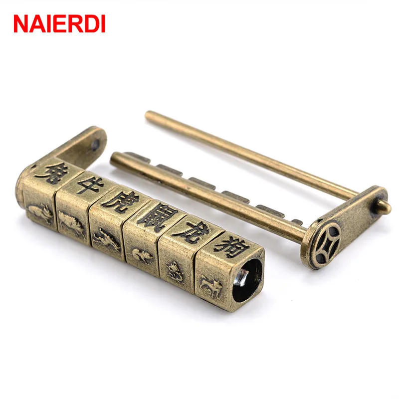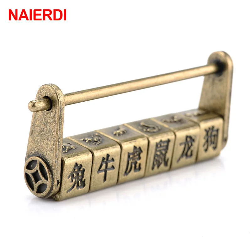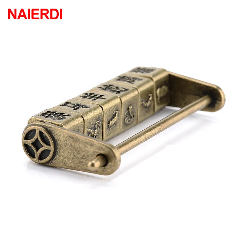 Китайский винтажный античный бронзовый замок NAIERDI из цинкового сплава с ключом в стиле ретро, кодовый замок, шкатулка с паролем, висячий замок 50*28 мм