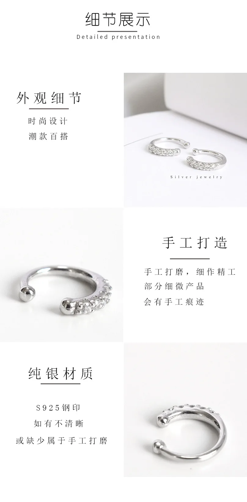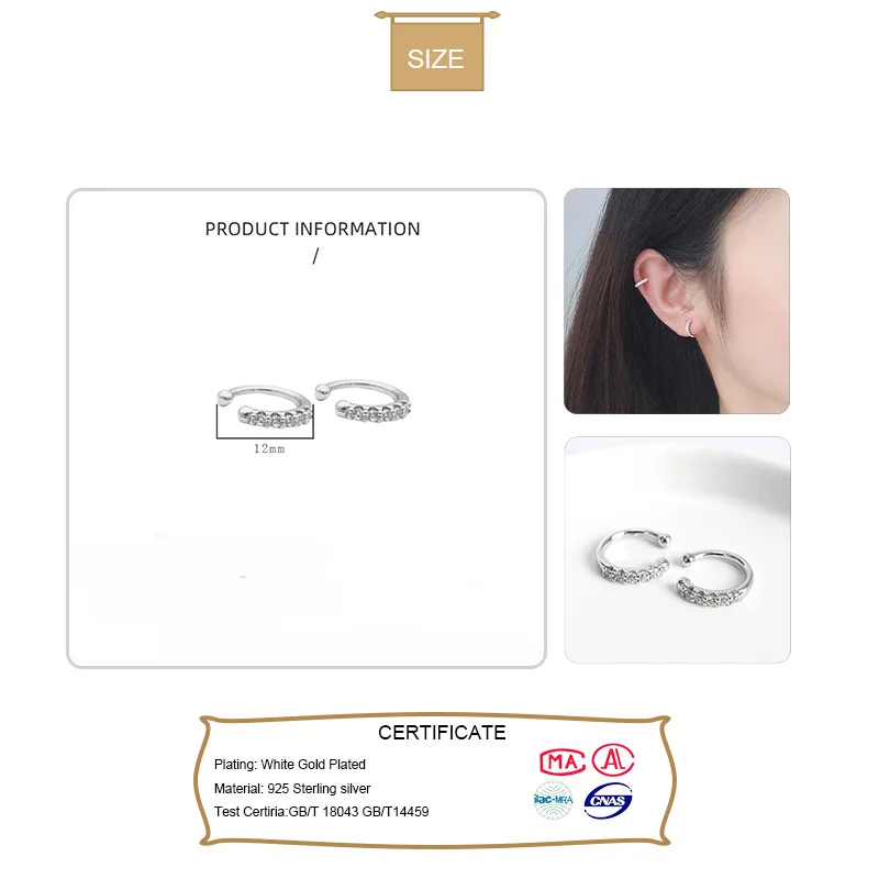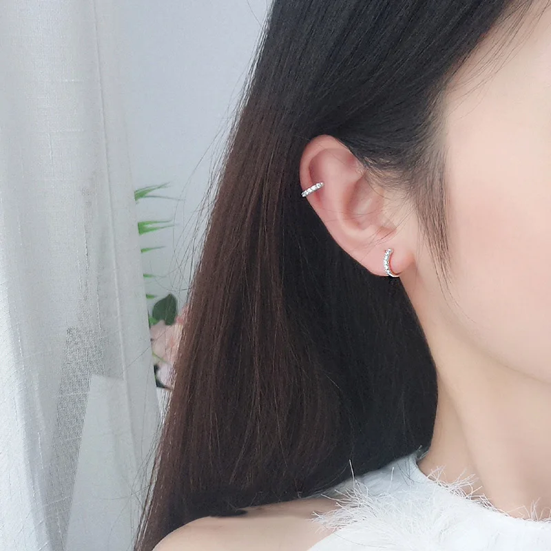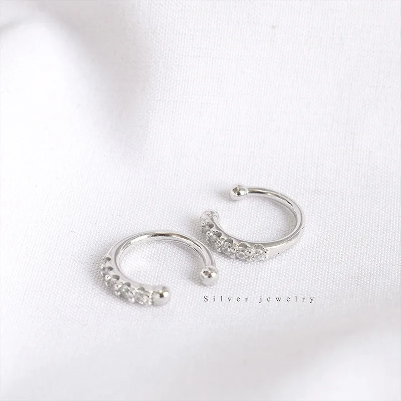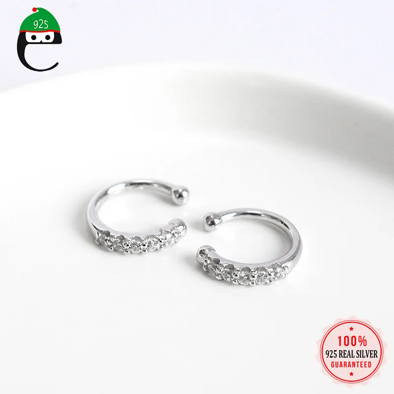 ElfoPlataSi Новые блестящие серебряные серьги-клипсы с фианитами для женщин и девушек серьги в стиле пирсинга ювелирные изделия DA372