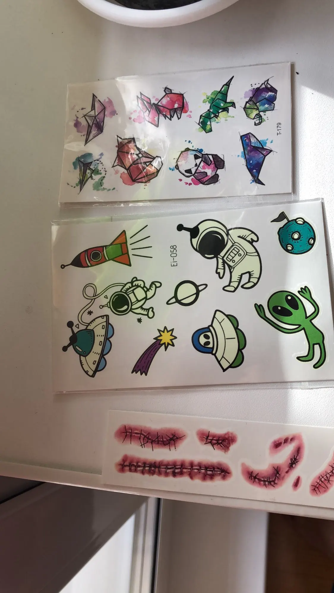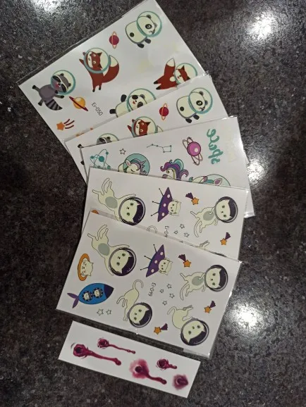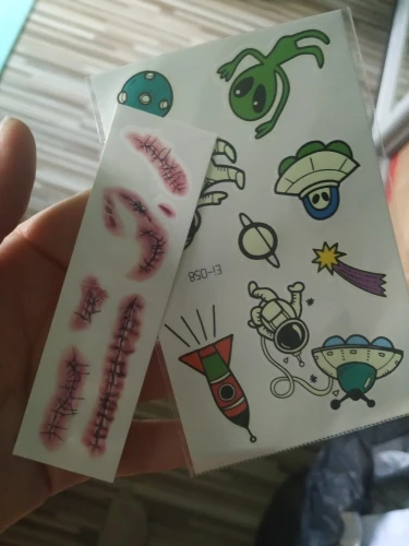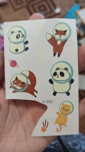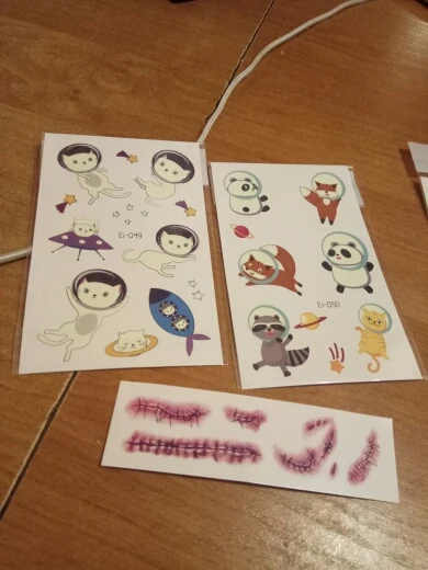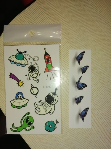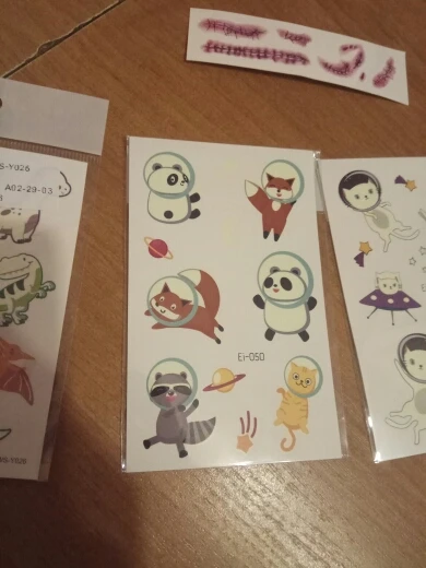 Хорошие тату, ребёнок в восторге. Светятся в темноте, рекомендую. Два раза пыталась загрузить с фото, не даёт. Так что поверьте на слово, отличные