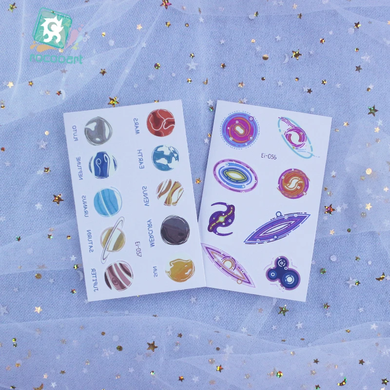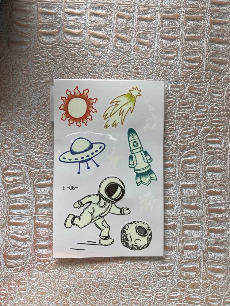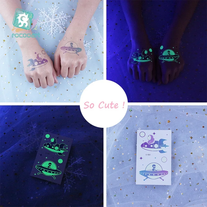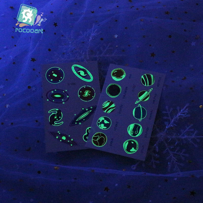 Татуировки Rocooart Space Man для детей, светящиеся темные татуировки, водостойкие поддельные татуировки, Светящиеся Татуировки, боди-арт, Мультяшные татуировки