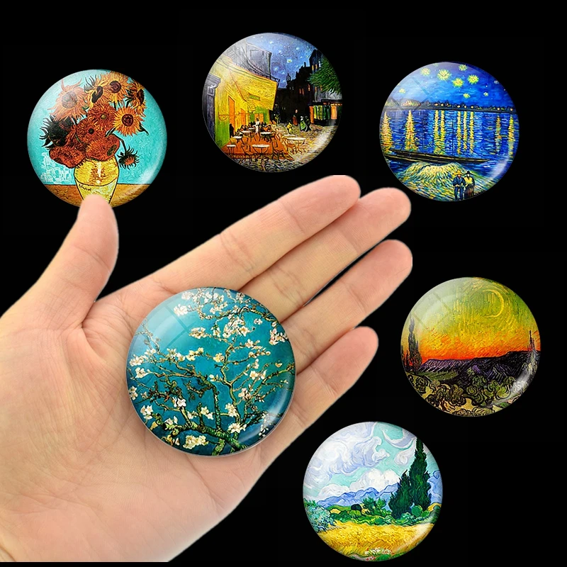 50 мм Ван Гог художественные картины наклейки на холодильник Звездная ночь подсолнухи магнит на холодильник Пейзаж Стекло Кристалл кабошон Декор