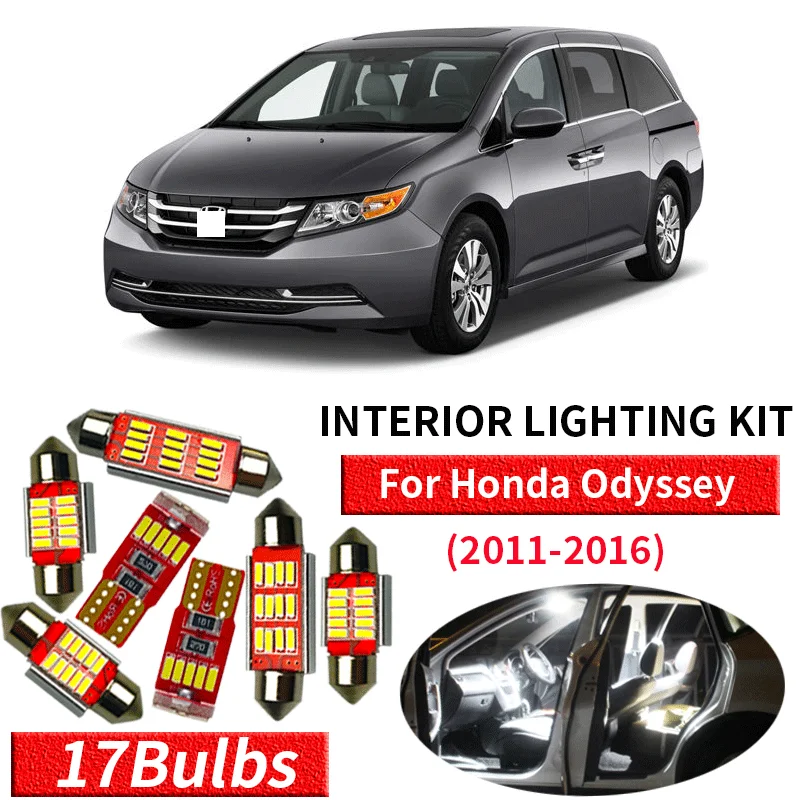 17 шт. белый светодиодный светильник для салона автомобиля, набор для 2011-2016 Honda Odyssey Map Dome Trunk Glove Box Lamp