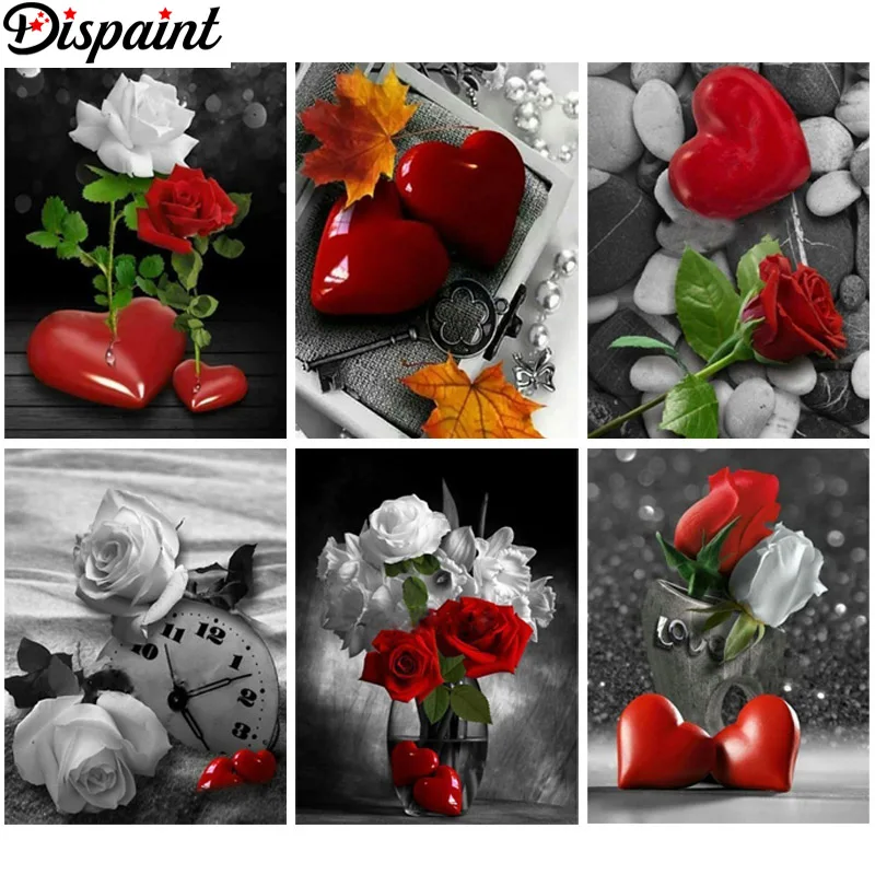 Dispaint, полная квадратнаякруглая дрель, 5D, сделай сам, алмазная живопись "Розовое сердце, пейзаж", 3D вышивка крестиком, 5D, домашний декор, подарок