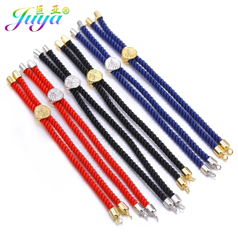 Juya ручной работы Красный Черный макраме Регулируемая нить металлические цепочки, аксессуары для Золотой Подвески серебряного цвета, принадлежности для изготовления браслетов