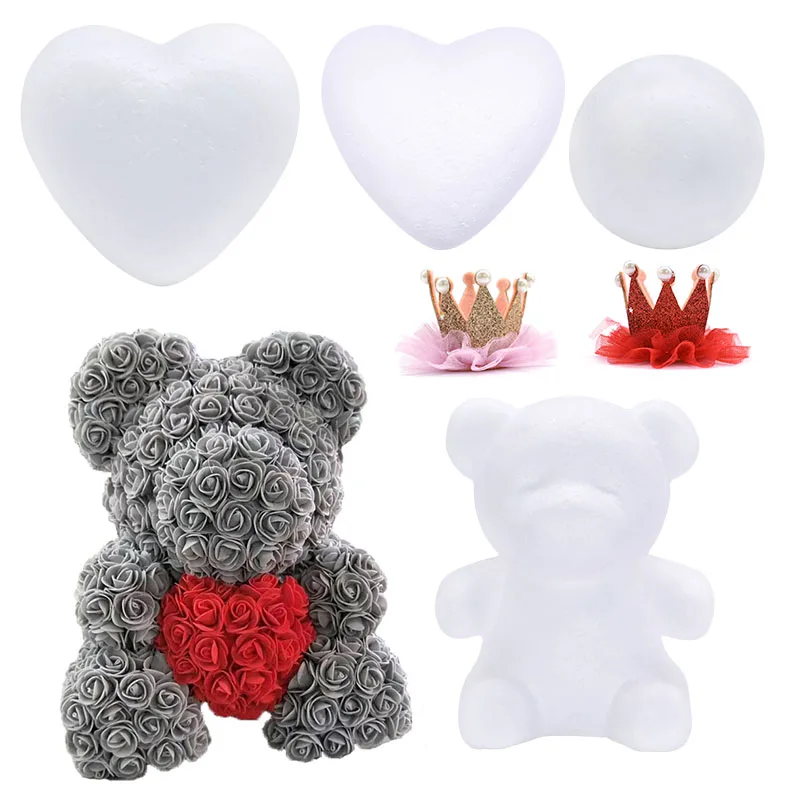 Белый пенопласт сердце мяч медведь форма мини искусственный цветок голова Роза Медведь DIY поставки подарок на день Святого Валентина Свадебная вечеринка украшение