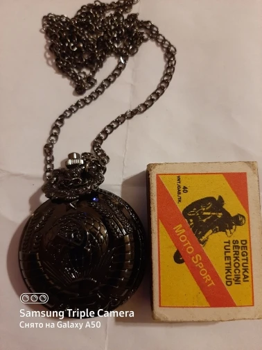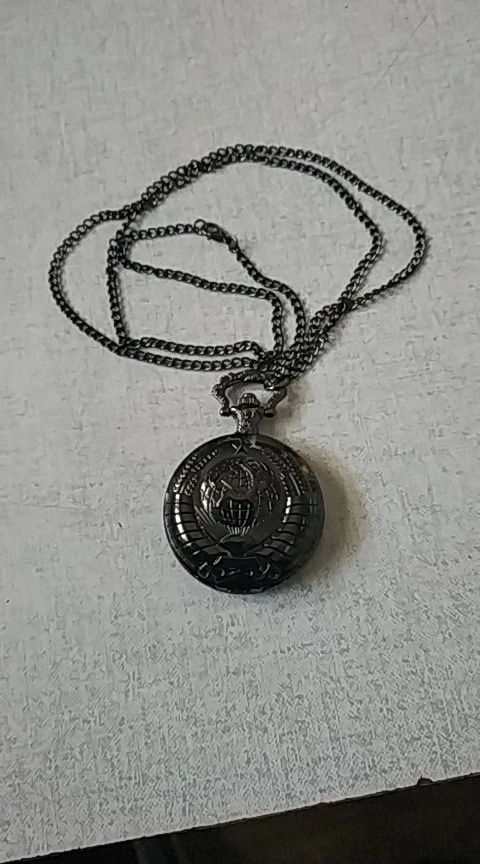 Очень прикольные кварцевые часы, на малюсенькой батарейке. Длина цепочки 80 см. Диаметр часов почти 5 см. Заказывала, еще в конце ноября. Доставили, как раз к 23 февраля. Подарила сыну. Продавец не сразу отправил товар и с ним не общались. Продавцу спасибо.